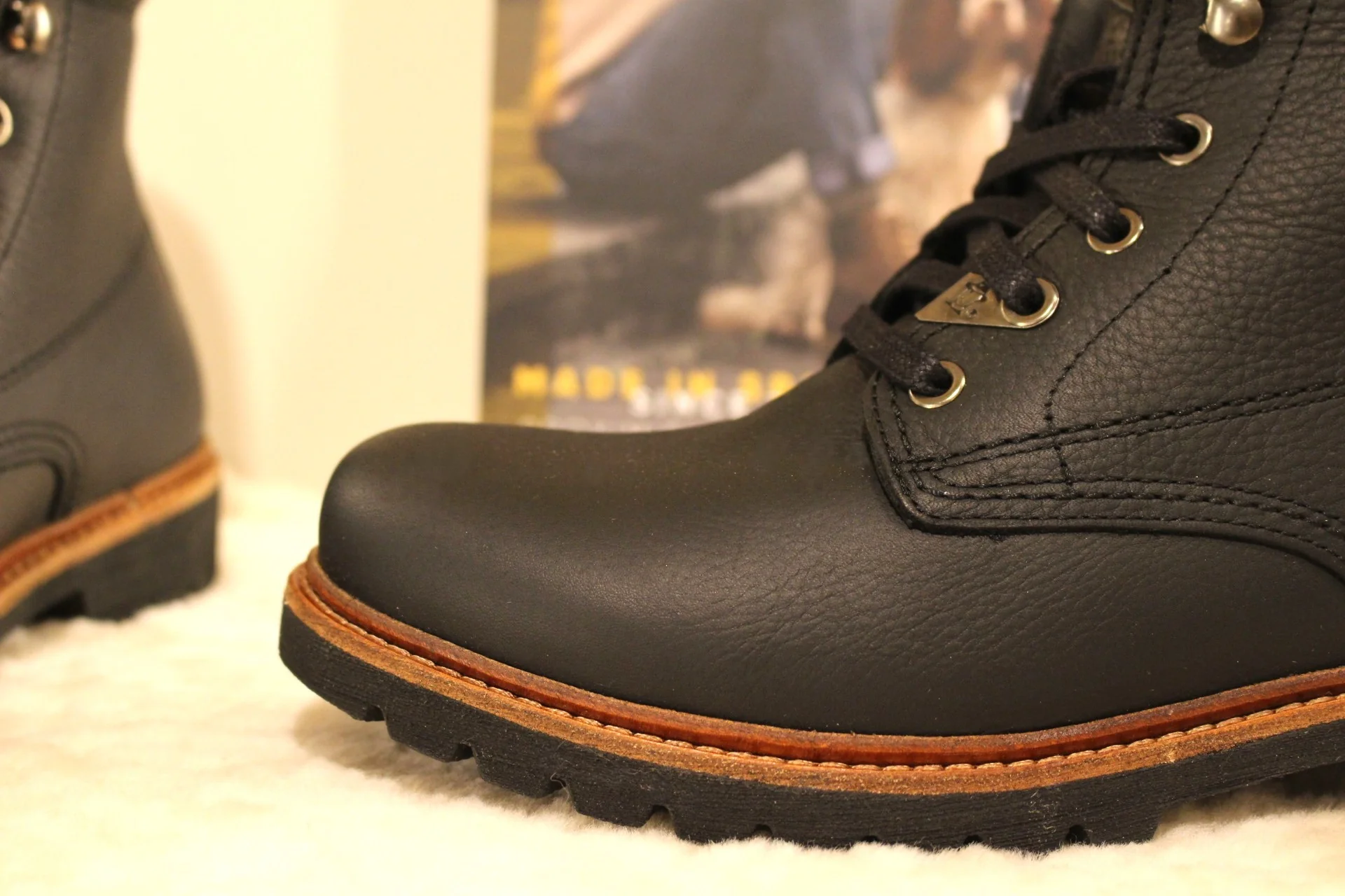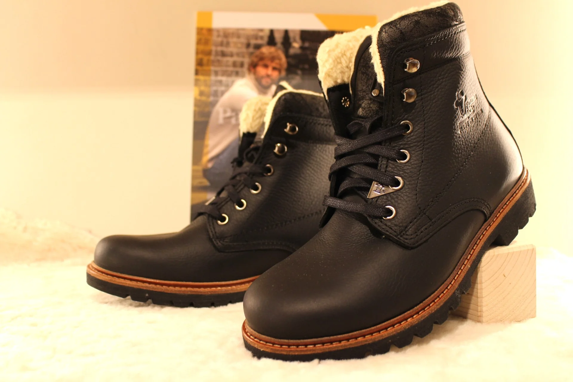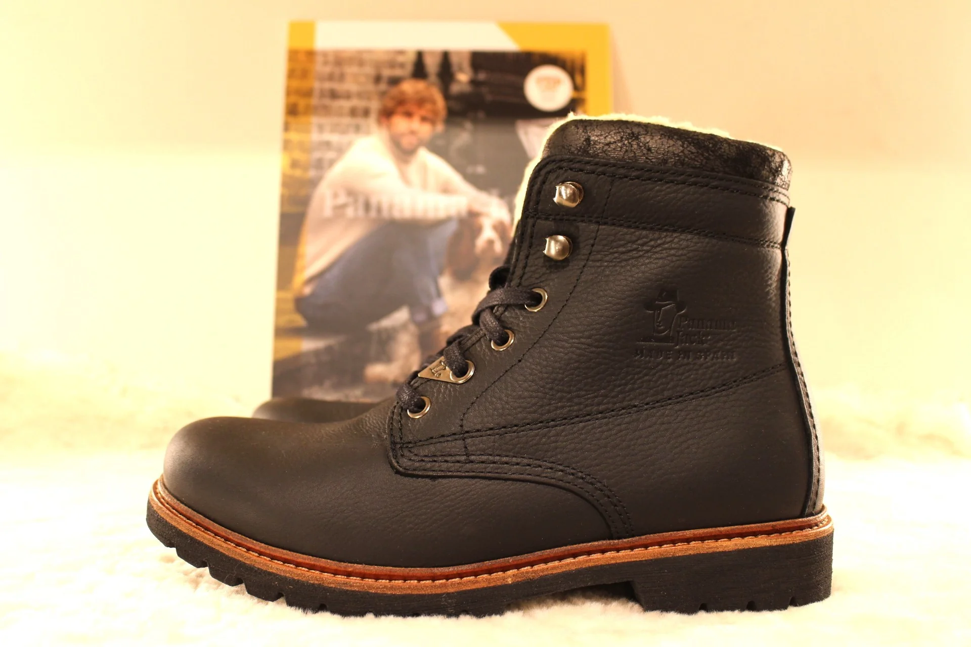 Bottines PANAMA JACK – Panama 03 Aviator. Fabrication Espagnole. Bottines d’hiver pour hommes en cuir gras de couleur noir. Cuir traité waterproof. Bottines doublées en coton. Serrage lacets coton ton sur ton et finitions crochets. Semelle interne en coton. Hauteur de la tige 15.5 cm. Trépointe naturelle. Semelle extérieure en gomme épaisse et crantée. Prêts pour cet hiver et les autres ..