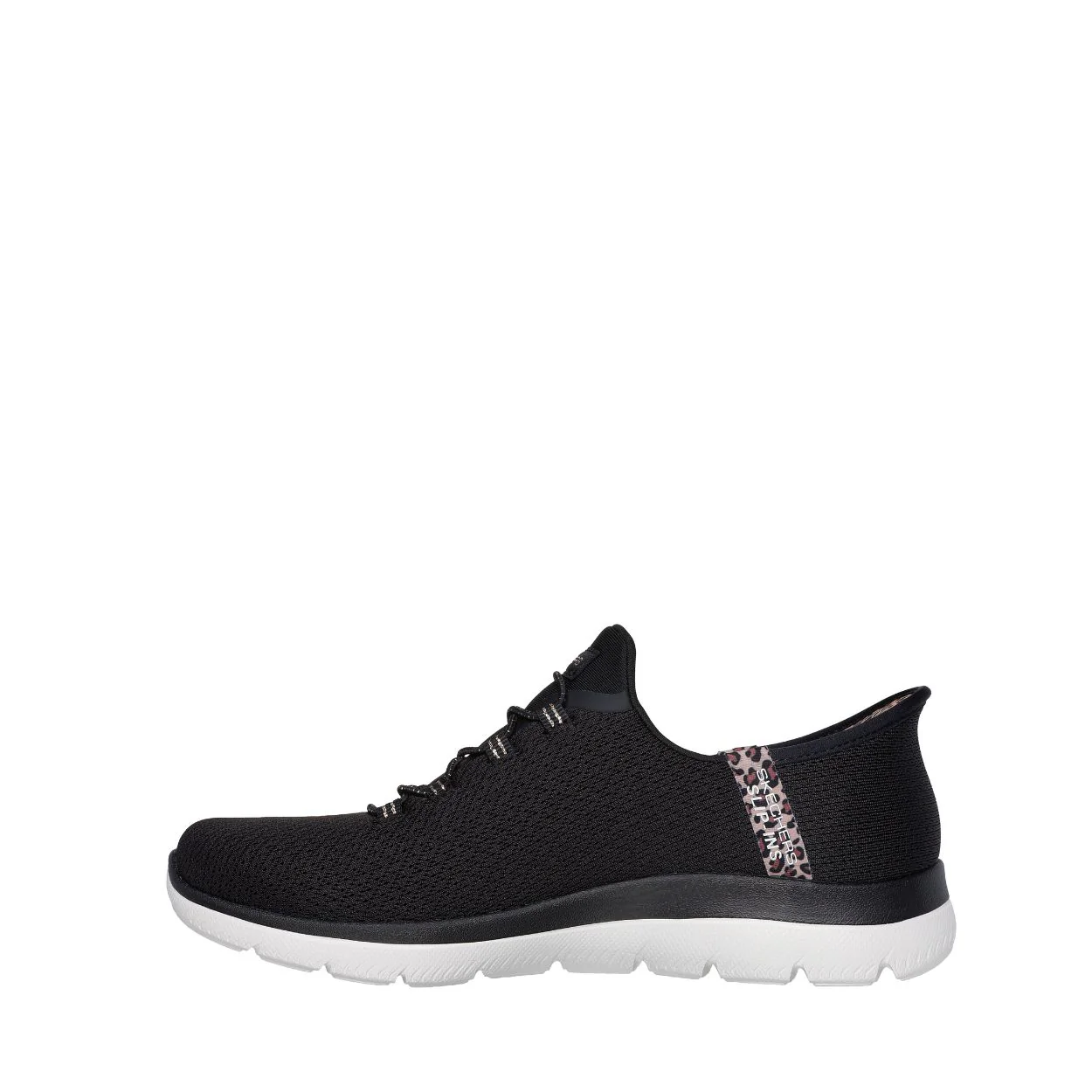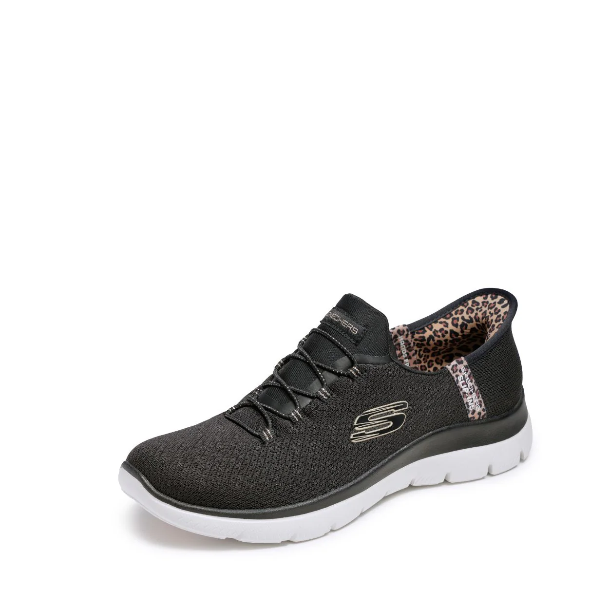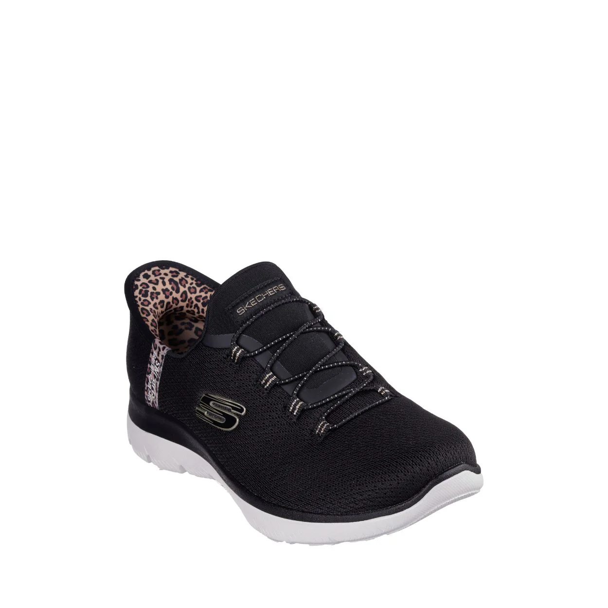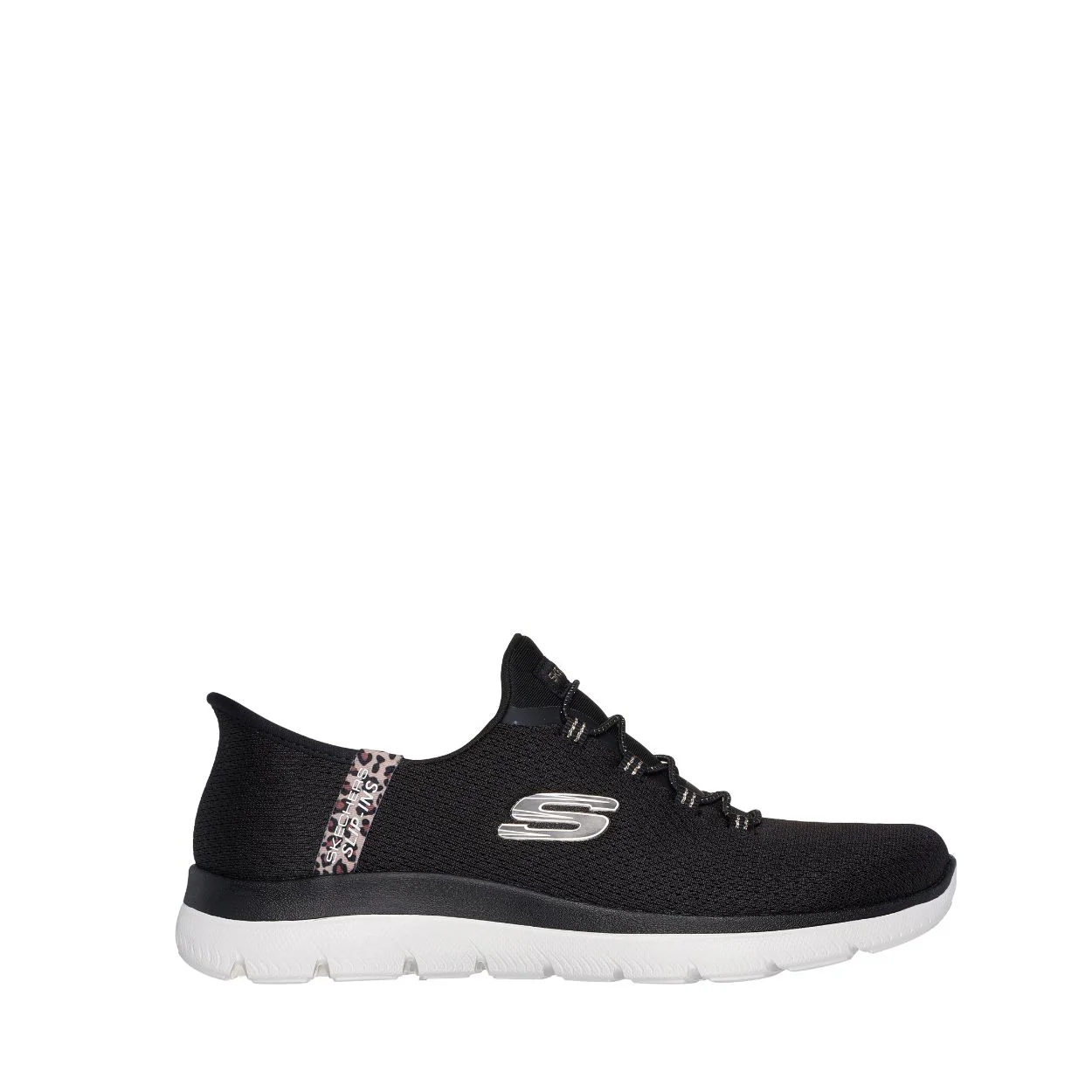 Ajoutez une touche de glamour à votre démarche avec les Skechers Slip-ins® : Summits – Léopard Chic, alliant confort absolu et style sans effort. Conçu avec notre Heel Pillow®, ce modèle végane présente une tige en mesh ornée d’un liseré léopard, des lacets extensibles fixes et une assise plantaire confort Skechers Air-Cooled Memory Foam®.