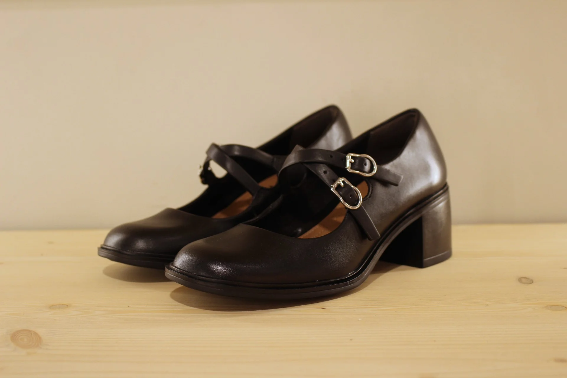 Chaussures TAMARIS 22411. Babies en cuir de couleur noir. Serrage par deux boucles croisées sur le coup de pied. Semelle interne en cuir. Doublure textile. Bon amorti de la semelle externe en gomme de 1 cm. Talon de 4 cm. Un vrai caractère sur un jean..