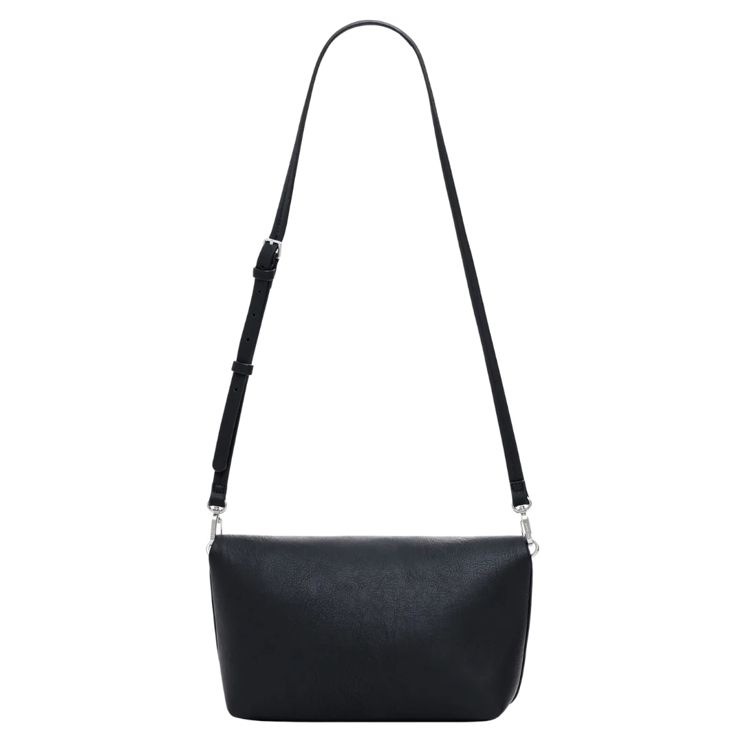 Sac bandoulière en tissu effet cuir, avec logo effet 3D, fermeture éclair, rabat extensible, poignées interchangeables et porte-clés amovible de couleur unie. Couleur : Uni Multiples poches Fermeture : à glissière Poignées interchangeables Porte-clés amovible Dimensions : 22,80 x 8 x 15,50/31,40* cm