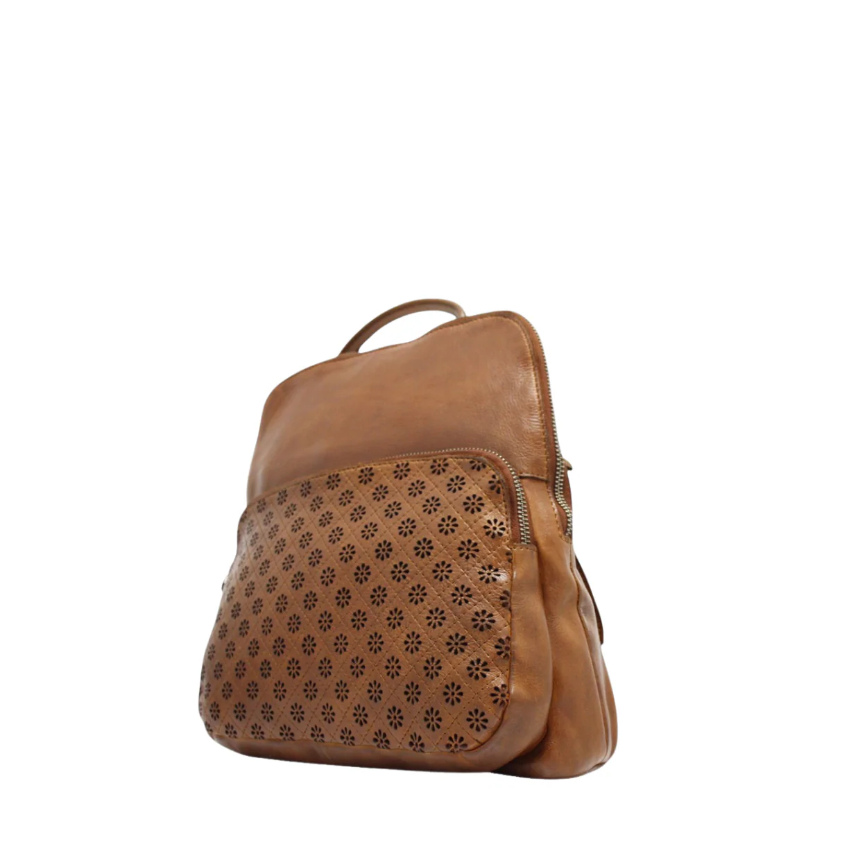 Ce sac à dos en cuir véritable conjugue parfaitement raffinement et fonctionnalité. Son devant perforé de motifs floraux ajoute une touche de féminité tout en restant sobre. Idéal pour la vie urbaine ou les escapades, il offre confort et style à toutes vos tenues.