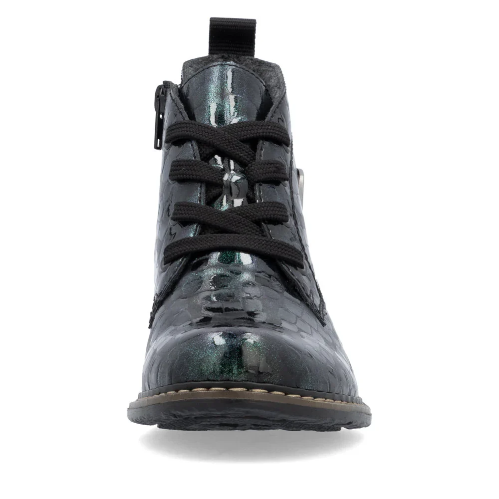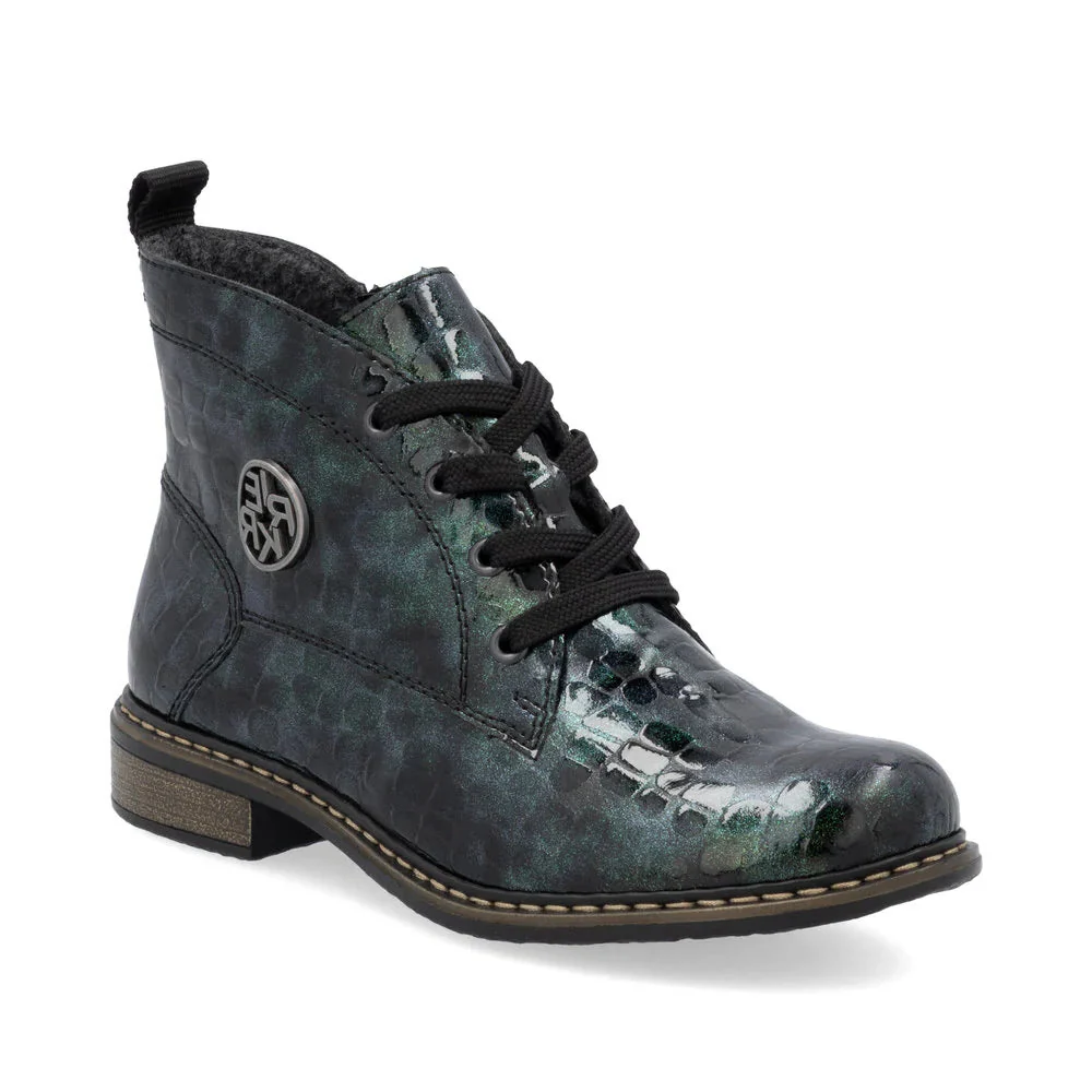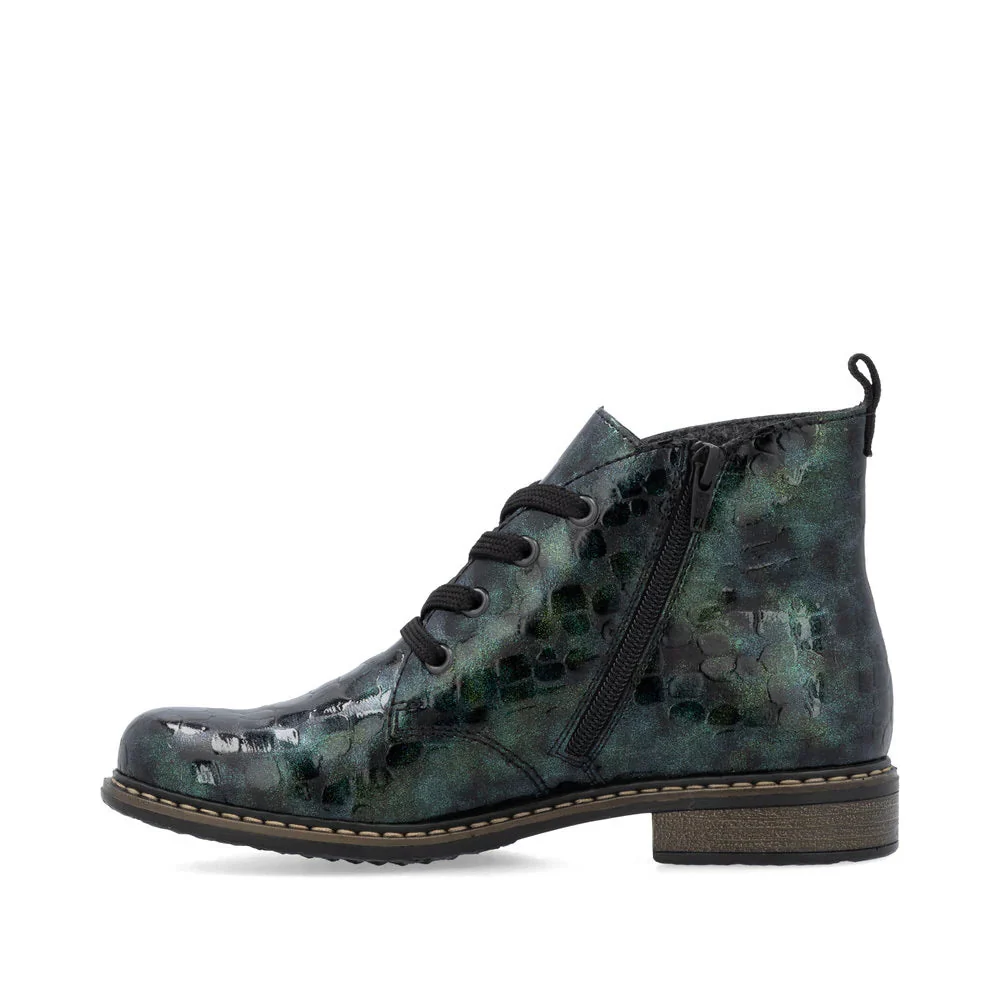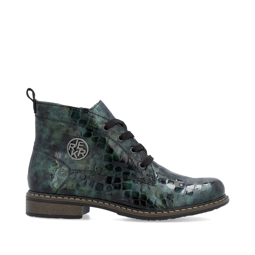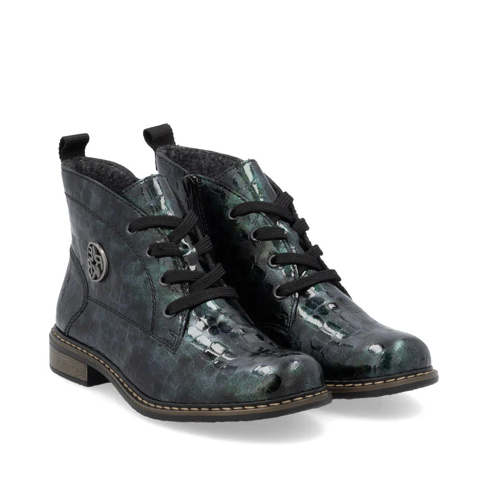 Un incontournable ! Ces bottines vertes à lacets Rieker vous garantissent une allure décontractée et tendance. Leur construction cousue rend la chaussure robuste et la semelle particulièrement souple. Le laçage complète la fermeture éclair et garantit ainsi un maintien optimal et un ajustement parfait. Le logo sur le côté attire tous les regards. Grâce à leur semelle légère et amortissante, vos pieds profiteront d’un confort optimal à chaque pas. Leur semelle extra-souple est un atout supplémentaire. Ces chaussures allient style et confort à la perfection !