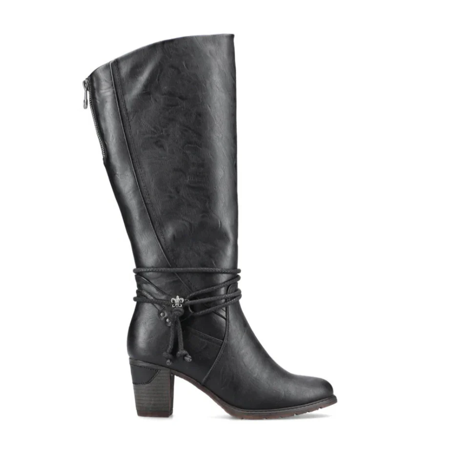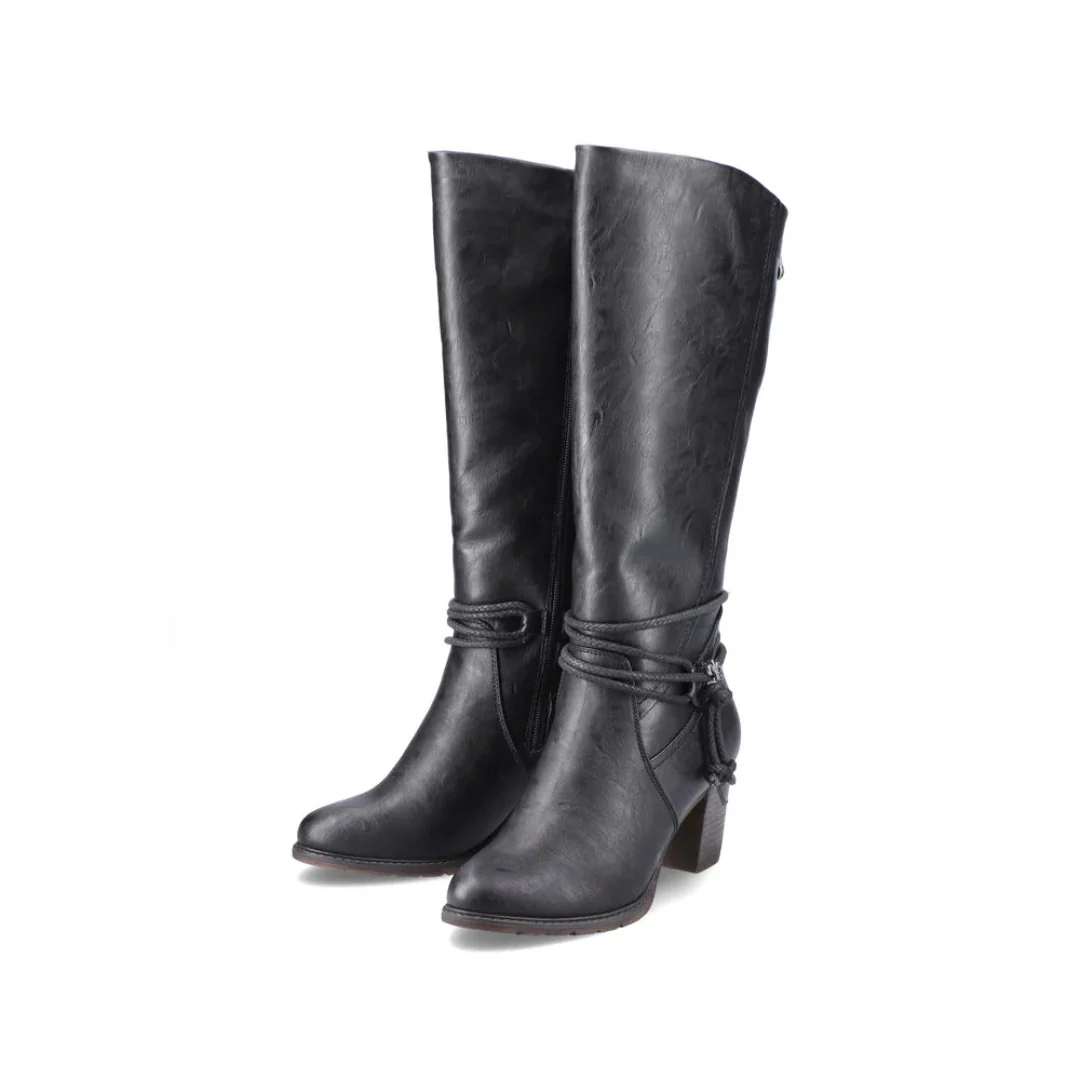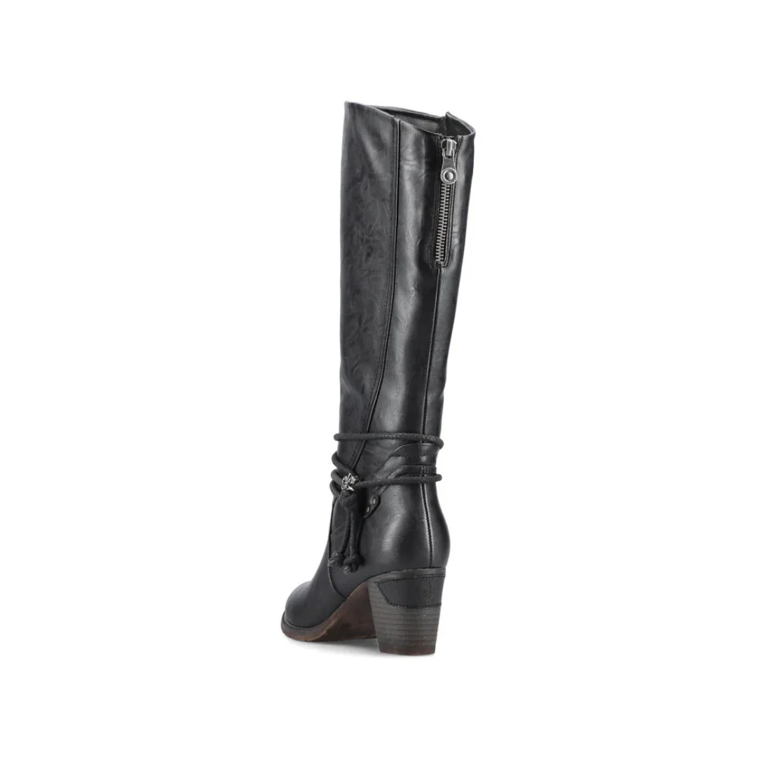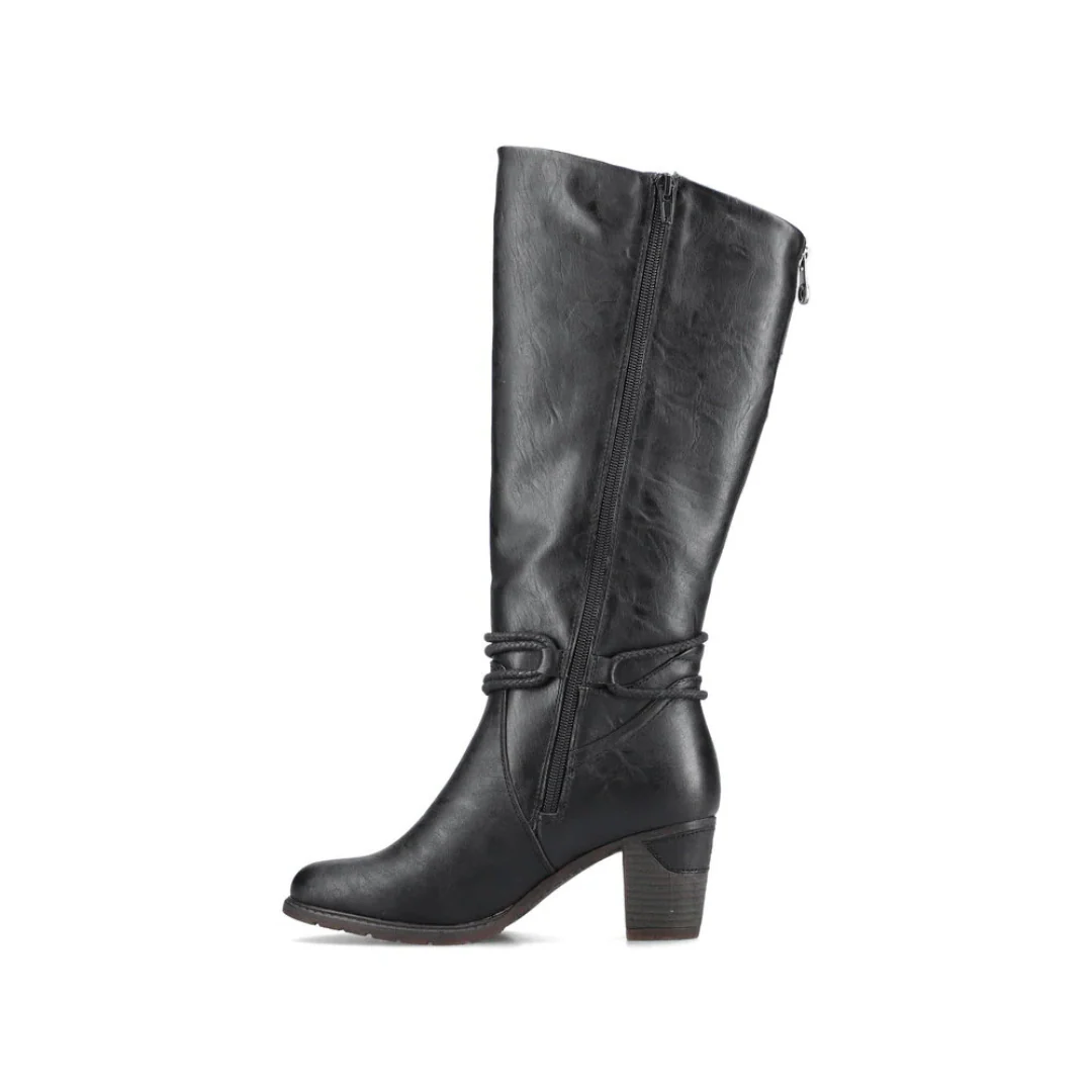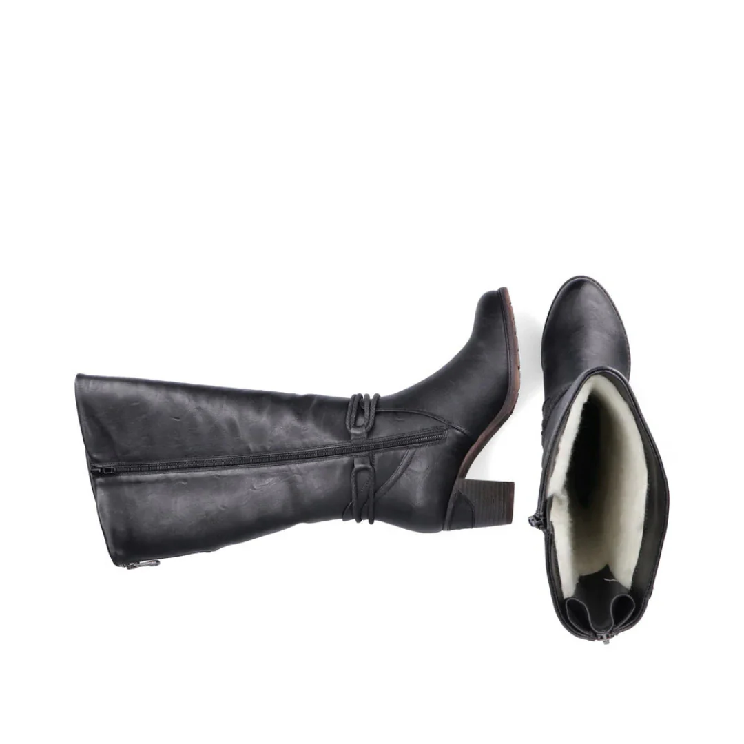 Style ET confort : il n’y a pas de « ou » ! Ces bottes hautes Rieker noires sont non seulement ultra-tendance, mais elles protègent aussi vos pieds du froid. La fermeture éclair permet un enfilage ultra-rapide. Le cordon tendance apporte une finition parfaite et un look original. La semelle adhérente à talon bloc assure un bon maintien. La tige Vario assure une largeur de tige personnalisée. La doublure douce et chaude fait de ces bottes les compagnons parfaits, où et quand ! Un potentiel de chaussures 100 % coup de cœur !