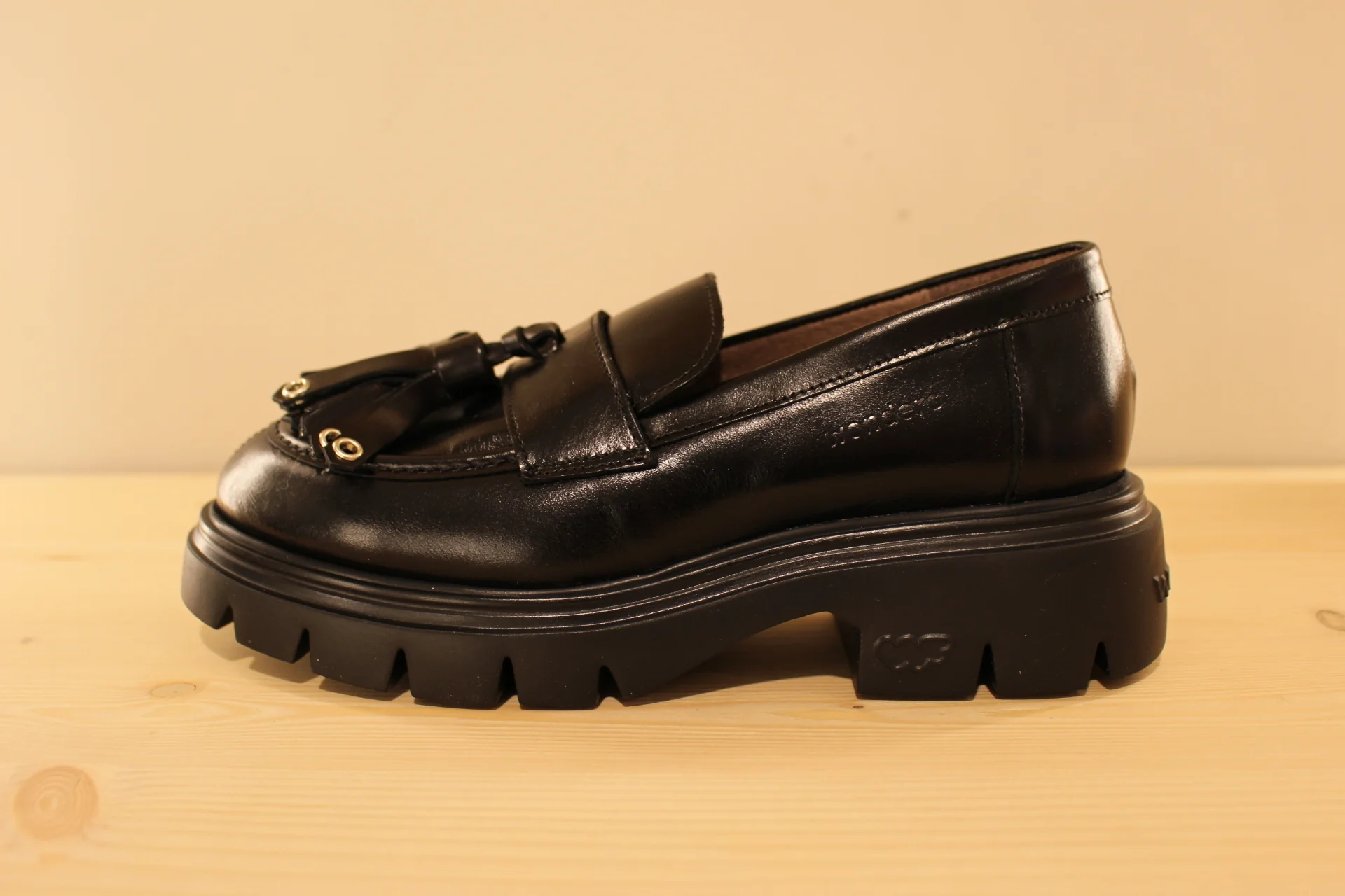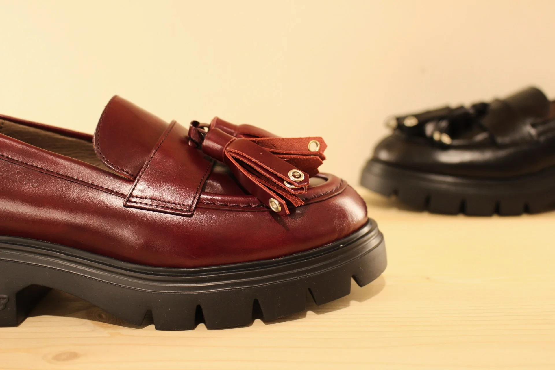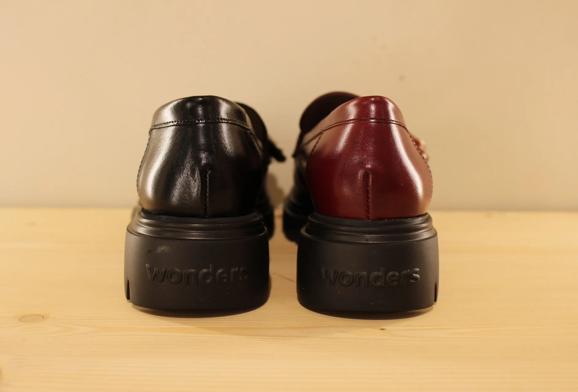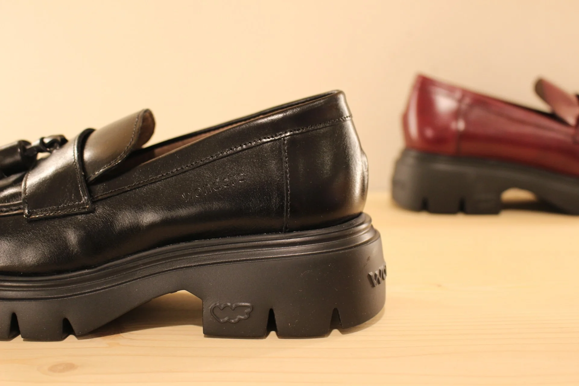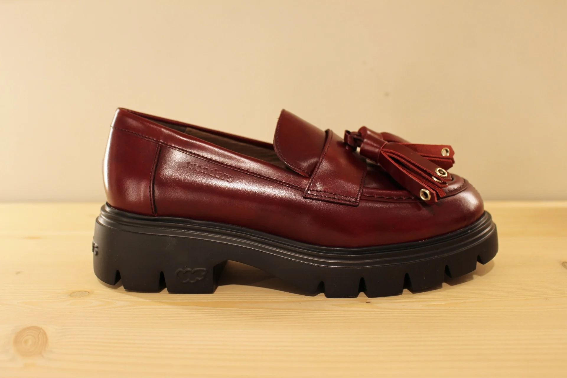 Chaussures WONDERS A-4303. Fabrication Espagnole. Chaussures coupe mocassin, en cuir de couleur bordeaux ou de couleur noir. Déco pompons sur le coup de pied. Chaussures doublées cuir. Semelle intérieure en cuir avec gel à mémoire de forme. Semelle extérieure en gomme d’une hauteur de 3 cm. Talon de 1 cm. Un relooking parfait pour ce moc ! Chaussures extra légères