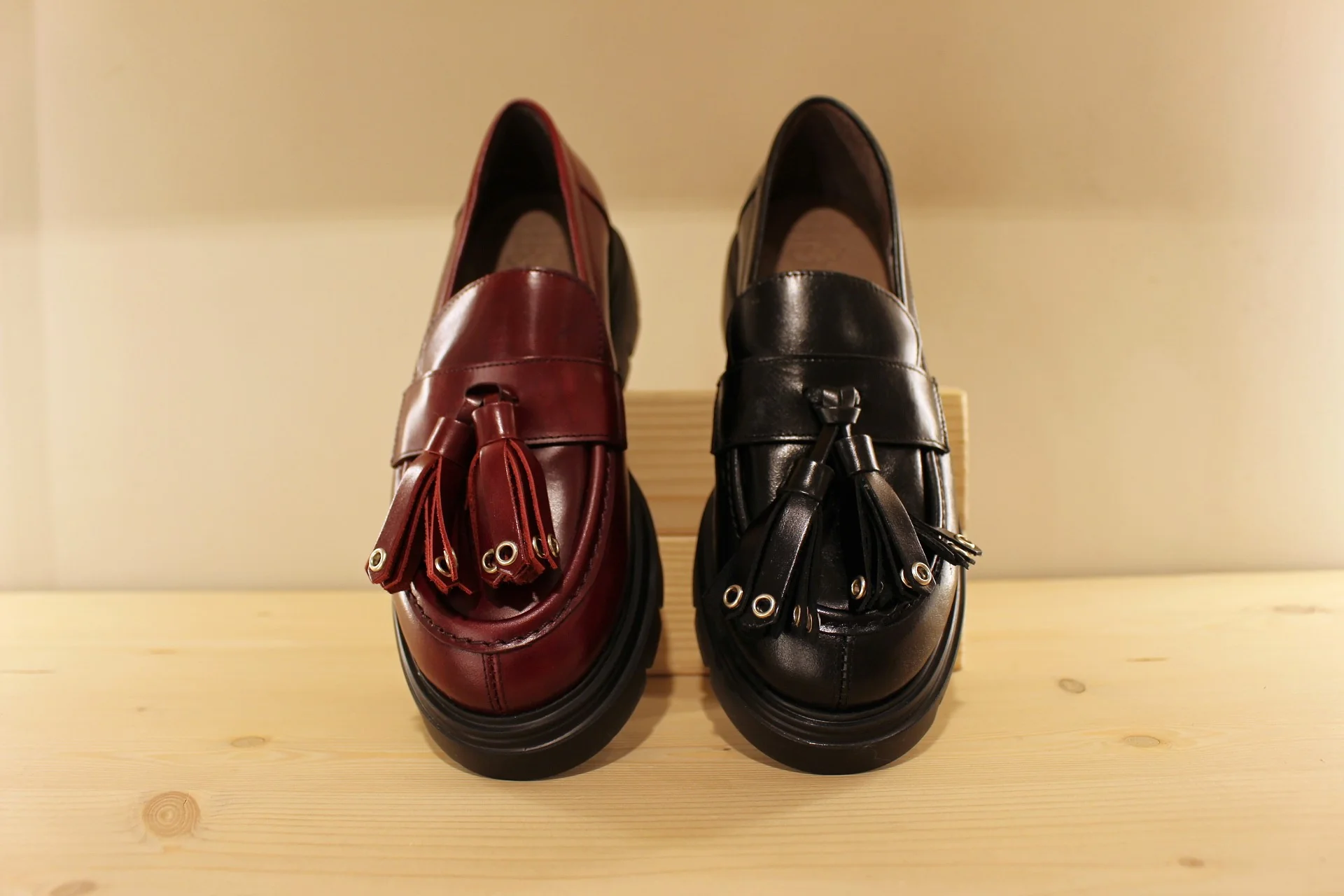 Chaussures WONDERS A-4303. Fabrication Espagnole. Chaussures coupe mocassin, en cuir de couleur bordeaux ou de couleur noir. Déco pompons sur le coup de pied. Chaussures doublées cuir. Semelle intérieure en cuir avec gel à mémoire de forme. Semelle extérieure en gomme d’une hauteur de 3 cm. Talon de 1 cm. Un relooking parfait pour ce […]
