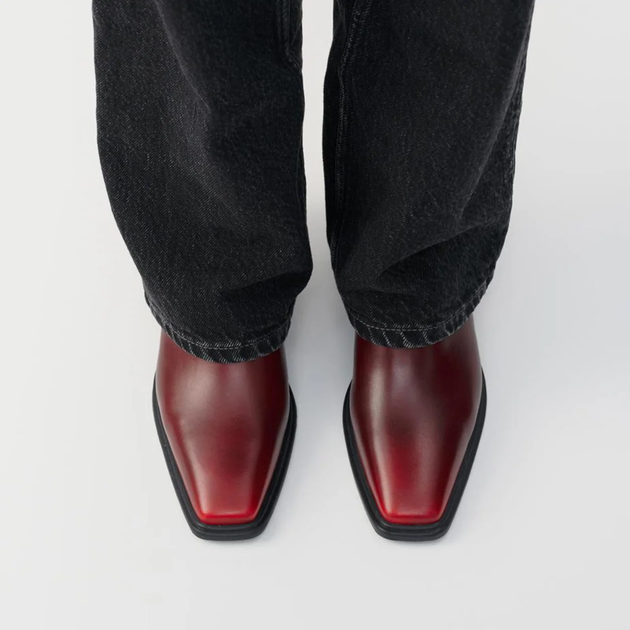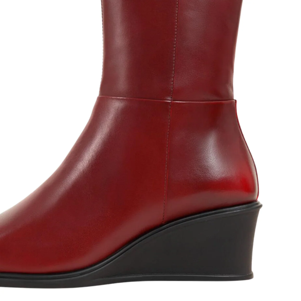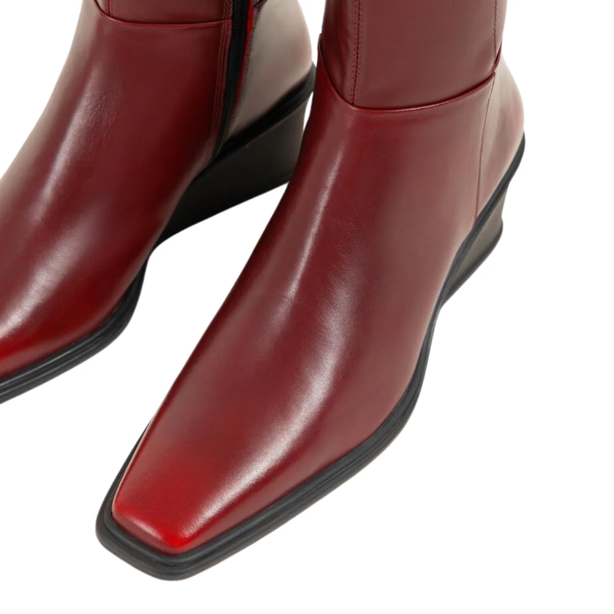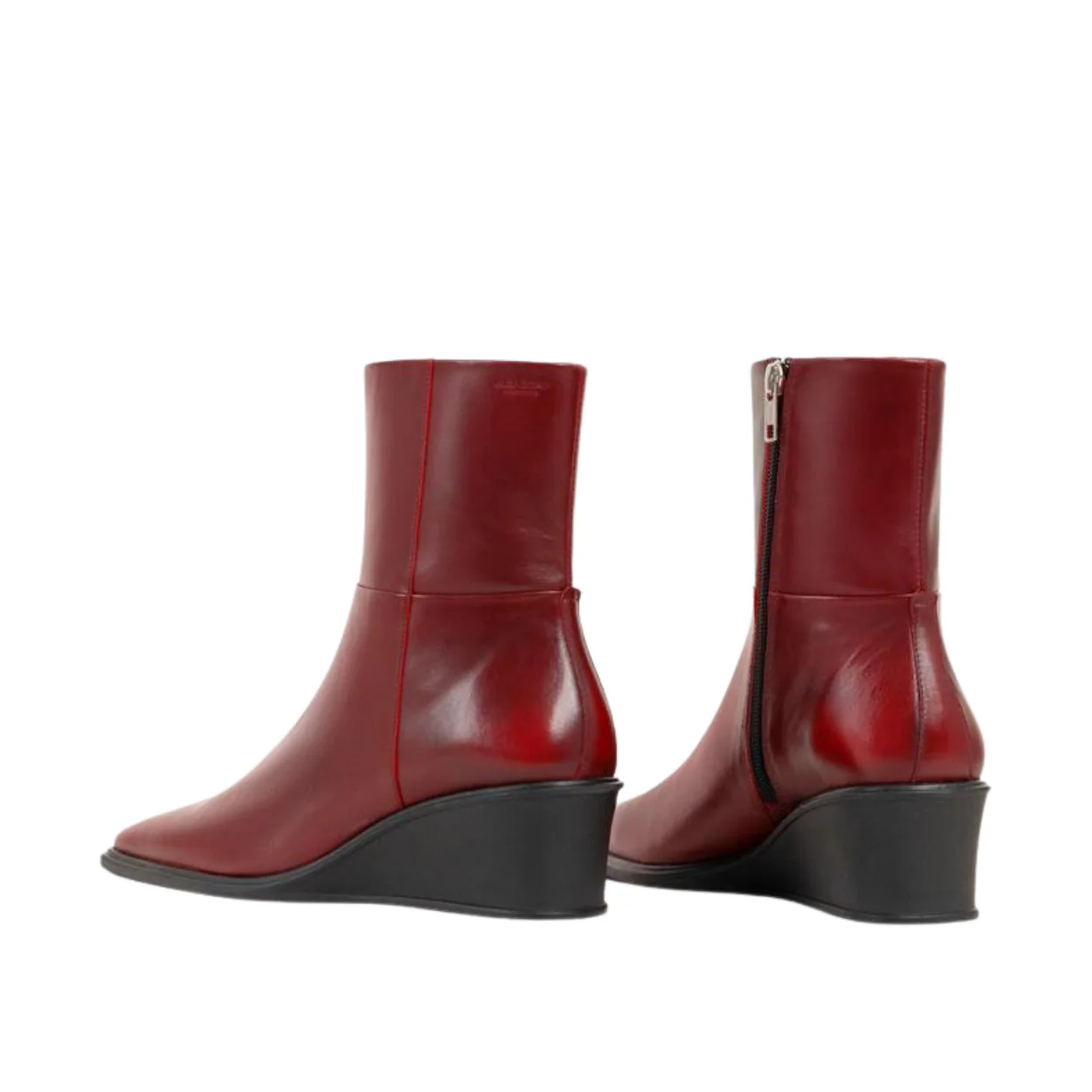 Aino, ce sont les bottines contemporaines à porter au quotidien. Le modèle est confectionné en cuir noir avec une forme pointue et une fermeture zippée sur le côté. Les talons compensés élégants mesurent 50 mm.