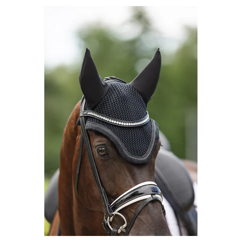 Le bonnet tissu sergé est en polycoton crocheté. Le bonnet protège les oreilles de votre cheval des mouches et autres insectes, gardant votre cheval calme et concentré pendant l’entraînement et les compétitions.