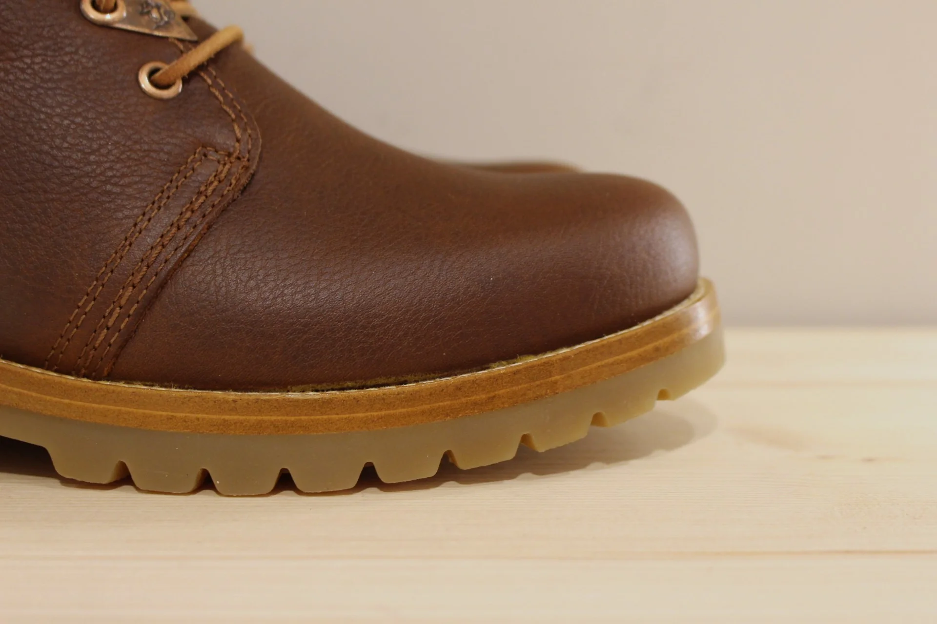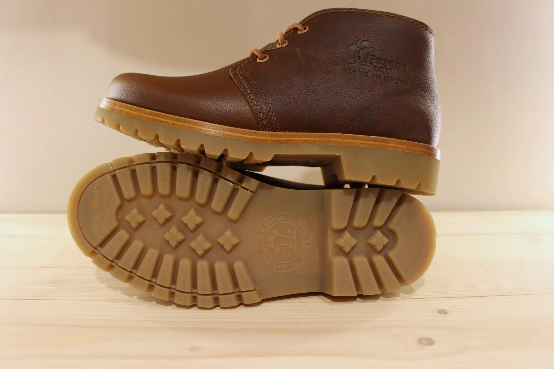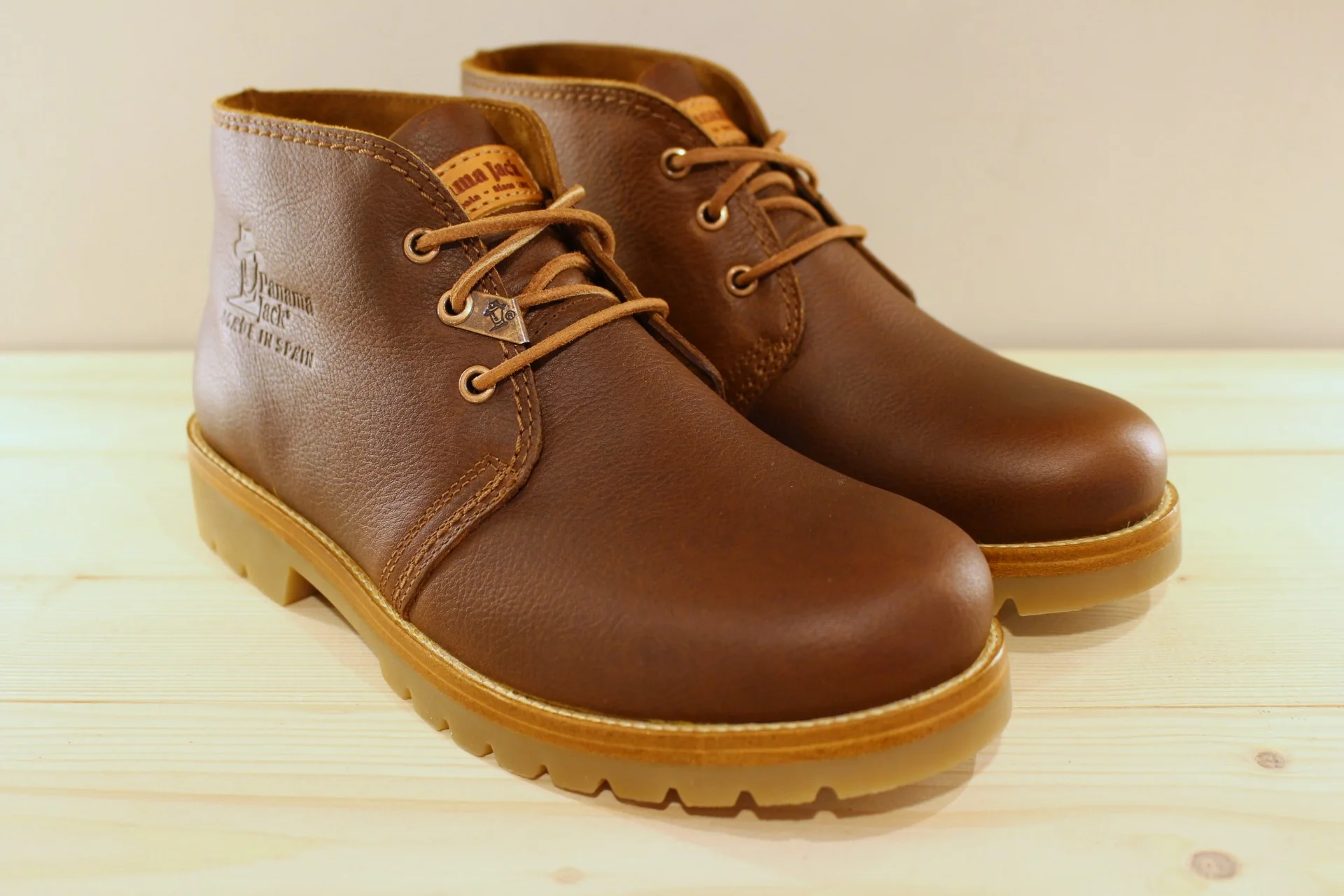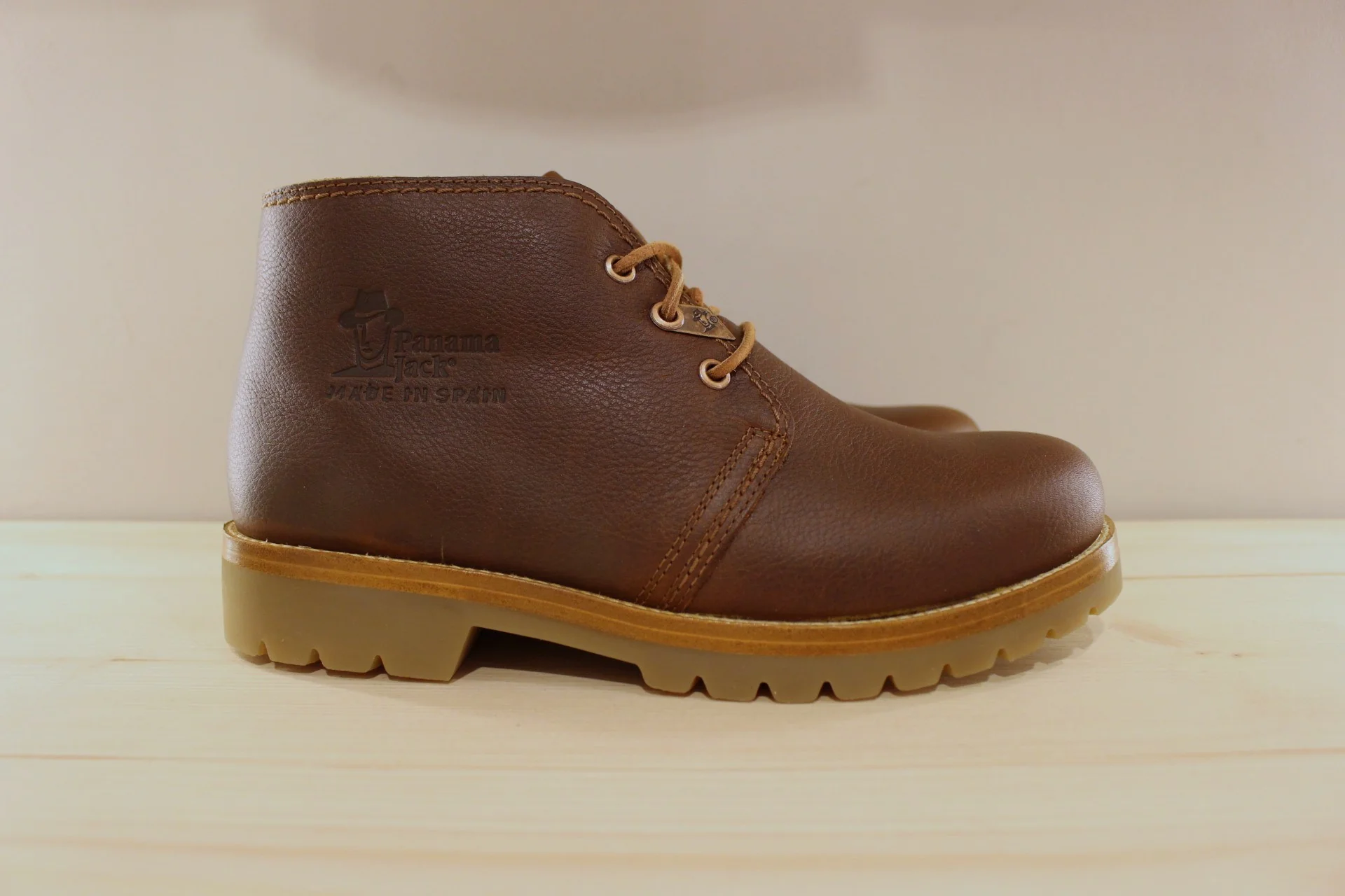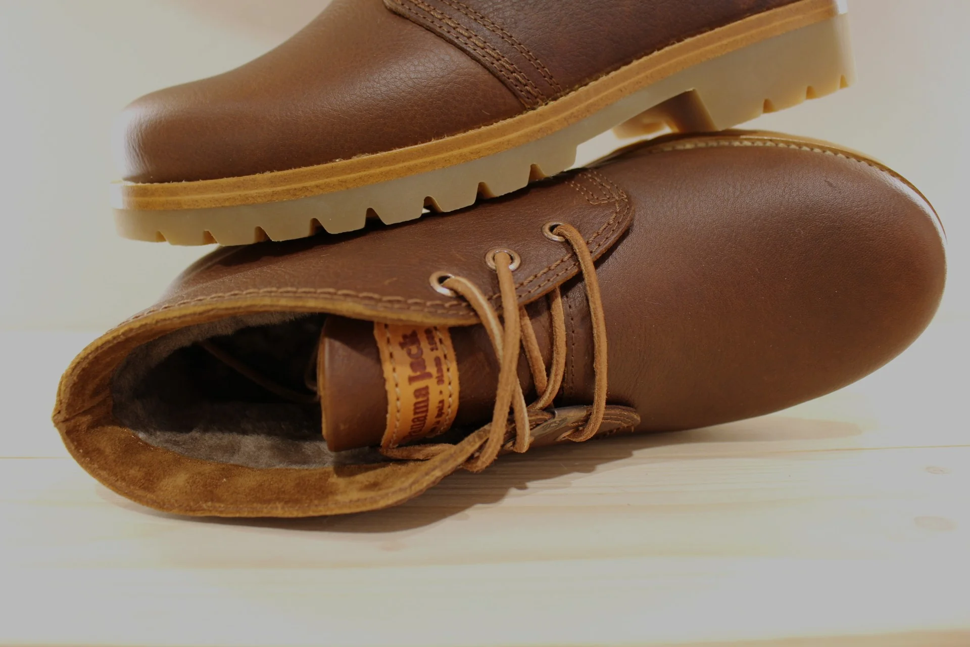 Chaussures PANAMA JACK – Bota Panama Igloo. Fabrication Espagnole. Chaussures montantes en cuir gras de couleur cuero (marron). Chaussures doublées mouton. Cuir traité waterproof. Hauteur de la tige de 11 cm. Serrage lacets cuir marron. Semelle intérieure amovible. Trépointe naturelle. Semelle extérieure en gomme épaisse et crantée. Existe du 40 au 45.