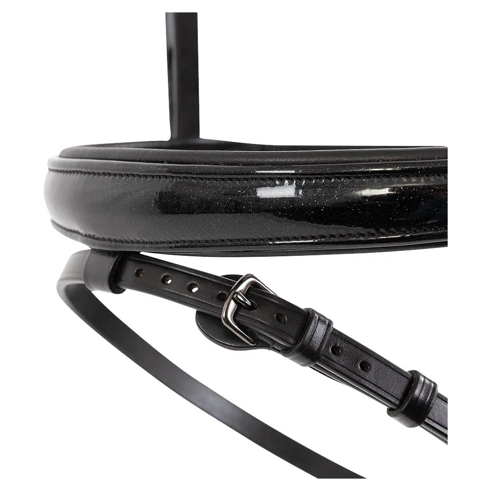 ✔ Design sophistiqué : Muserolle en cuir verni métallisé et frontal orné de cristaux Stellux®.