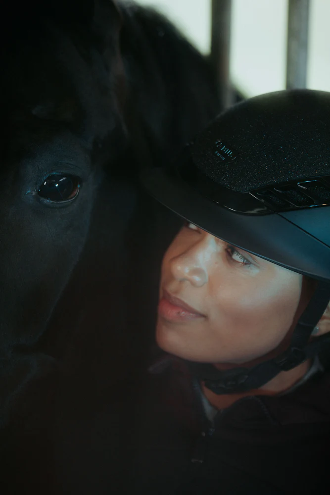 Un véritable bijou pour les cavalières à la recherche de raffinement, de sécurité et de confort. Le casque AIRLUXE SUPREME GLAM combine des éléments mats et brillants avec une coque supérieure scintillante au look glitter pour un rendu élégant et sophistiqué.