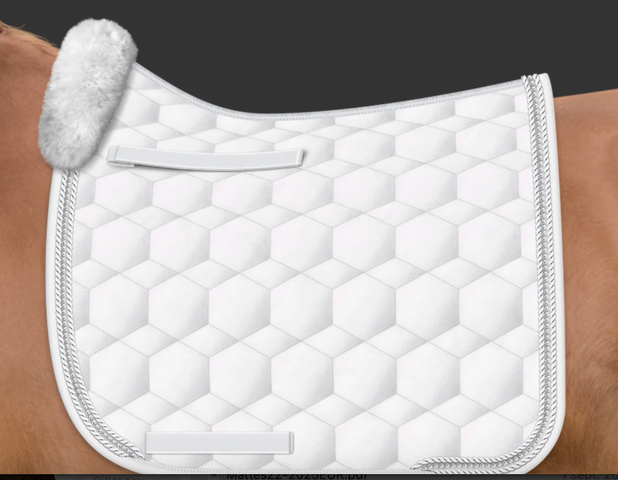 Le tapis de concours de Charlotte Chalvignac-Vesin également disponible pour vous! Avec ou sans cordelette ton sur ton Tapis de selle en coton lustré de belle qualité. Tissu Mattes avec âme en Poly-Flex Belle coupe dégarottée. Galon ton sur ton. Avec ou sans cordelette blanche Passants ton sur ton. Mouton véritable de coloris blanc sur […]