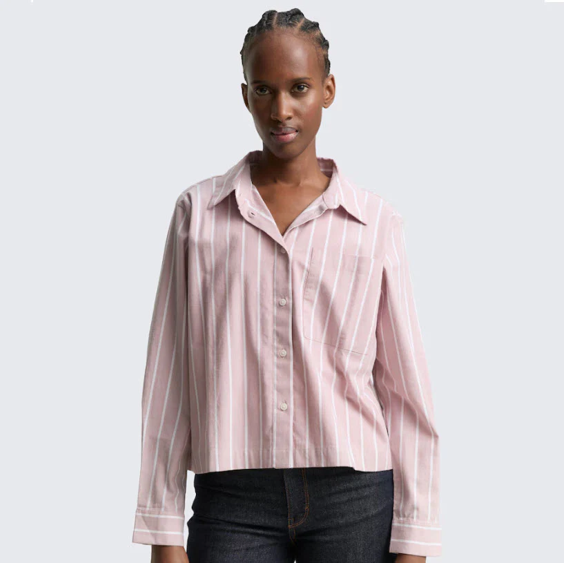 Chemisier rayé avec poche poitrine plaquée et couture d’épaule légèrement tombante