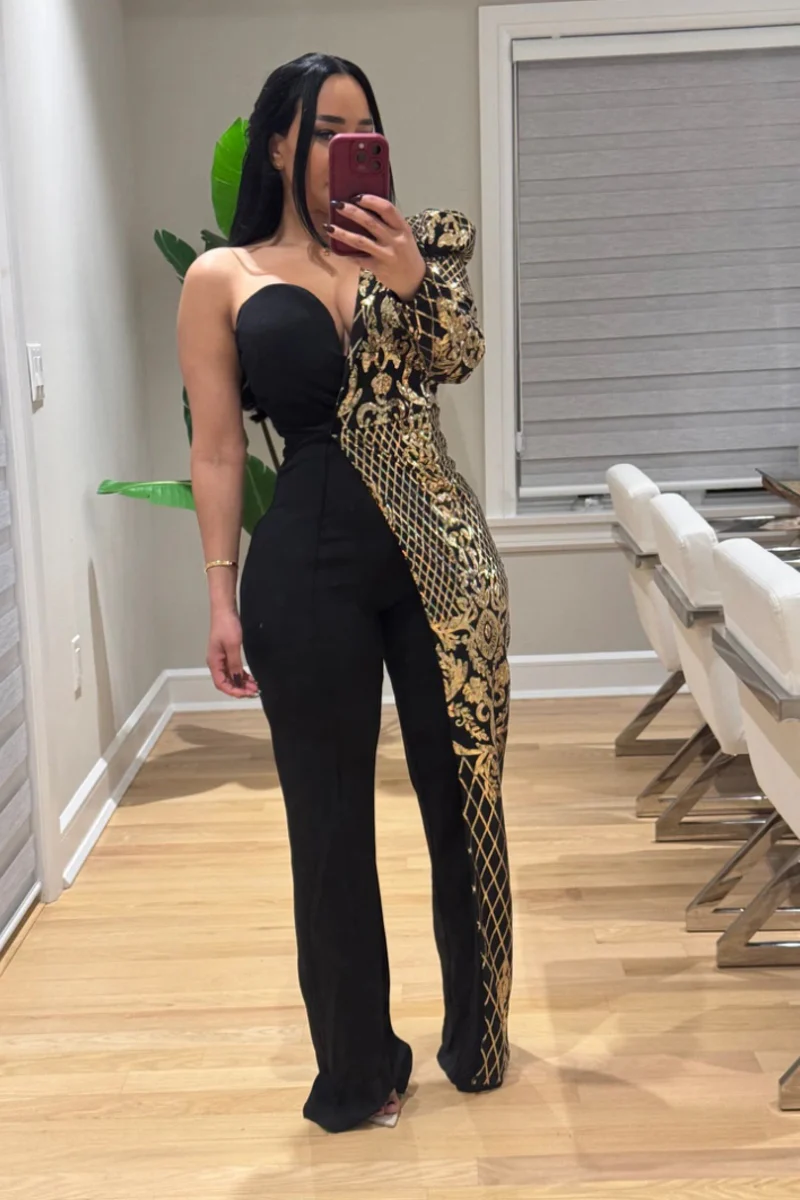 Soyez le premier à laisser votre avis sur “Combinaison à mode imprimé pailletée à une épaule”