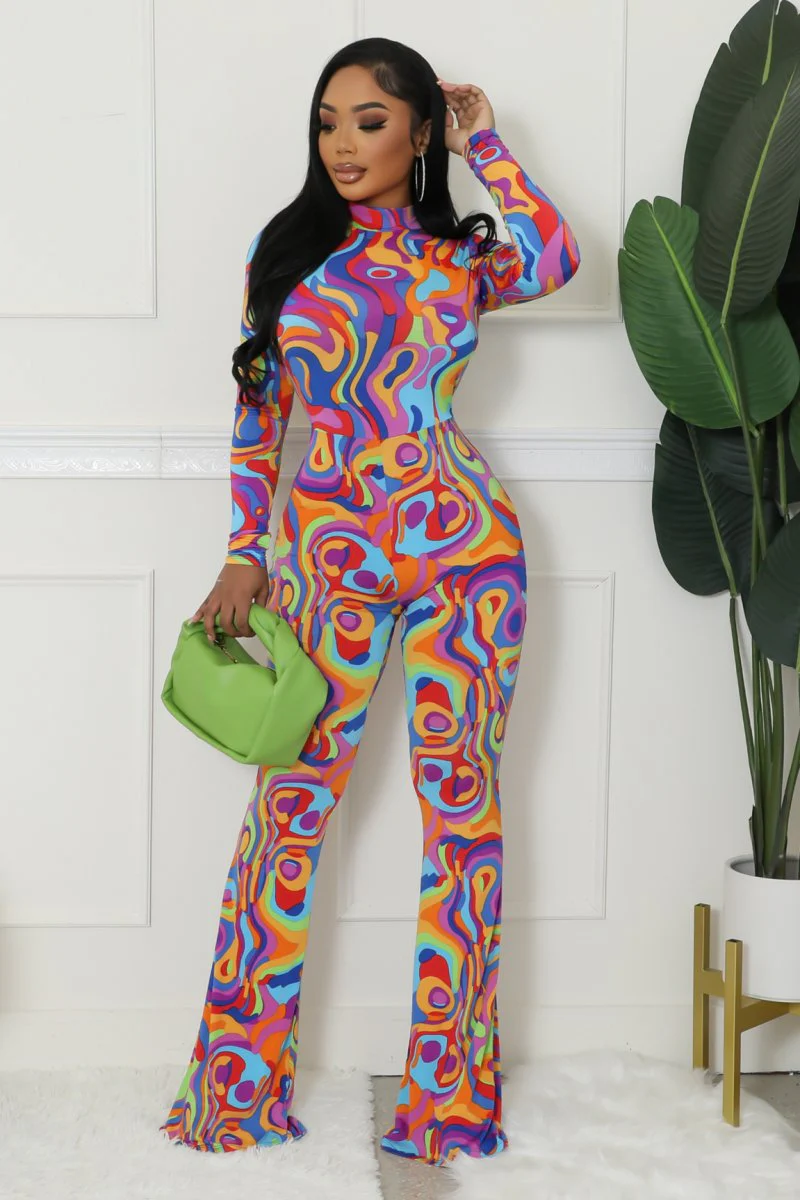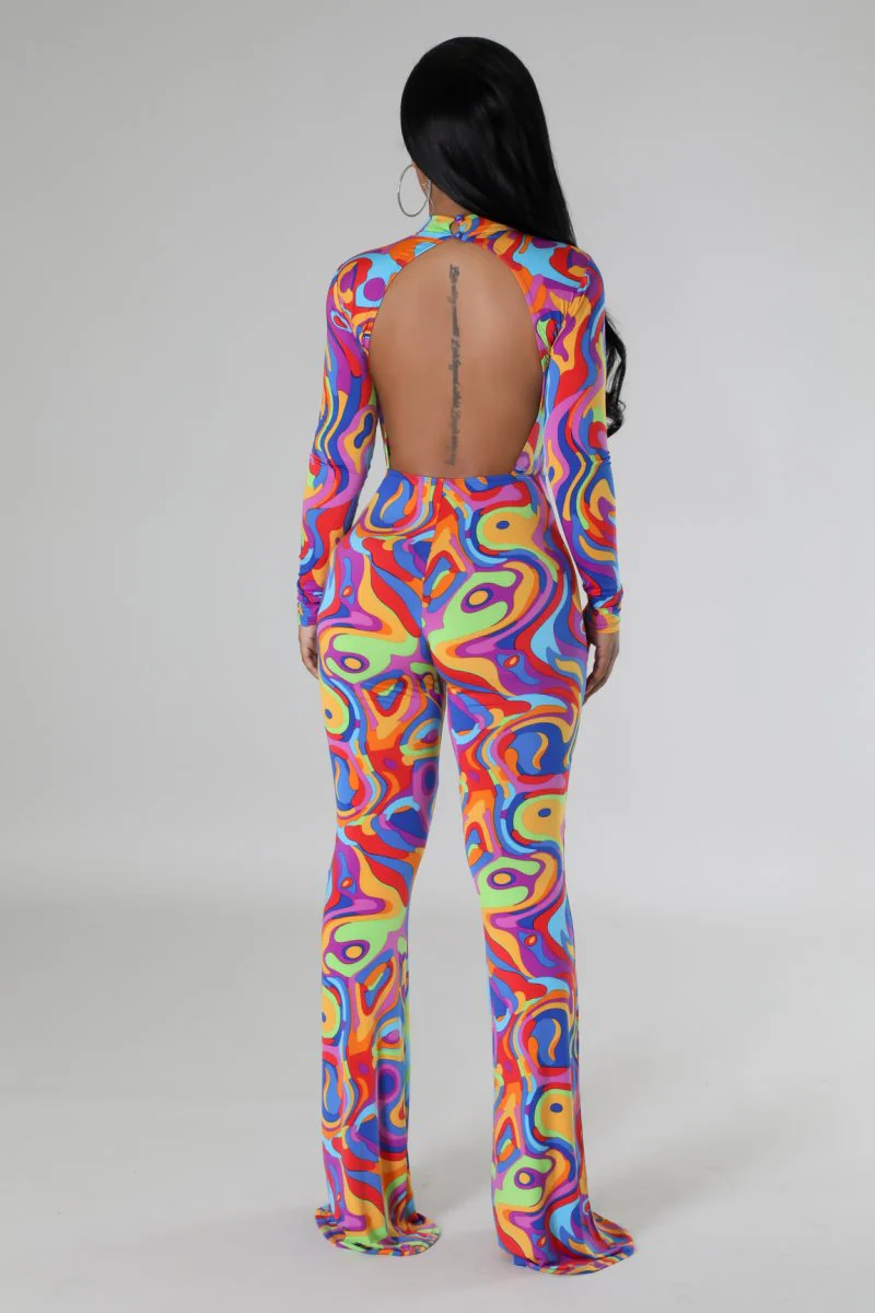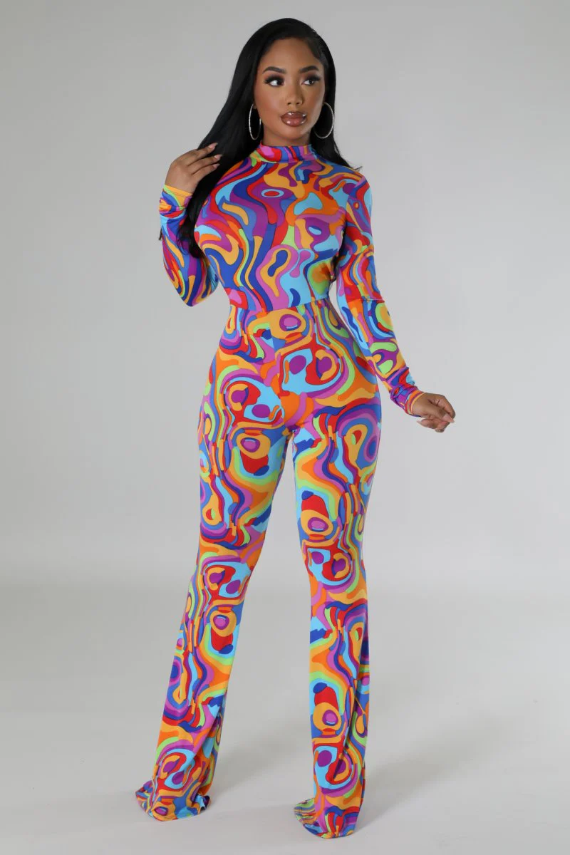 Combinaison extensibleCol montantManches longuesDos ouvertFermeture boutonnéeJambe largeLa couture intérieure mesure 40 pouces95 % polyester5 % élasthanneLavage à la main à froidLe mannequin porte une taille SSTATISTIQUES DU MANNEQUINHauteur : 5,5 poPoitrine : 32 po / Taille : 26 po / Hanches : 41 po