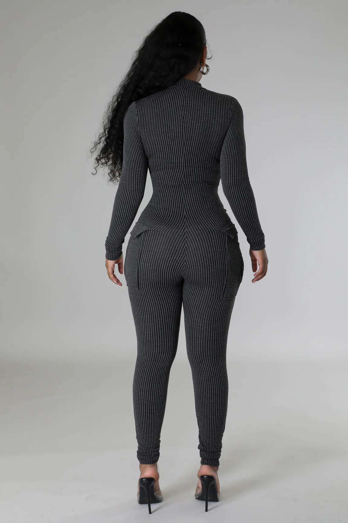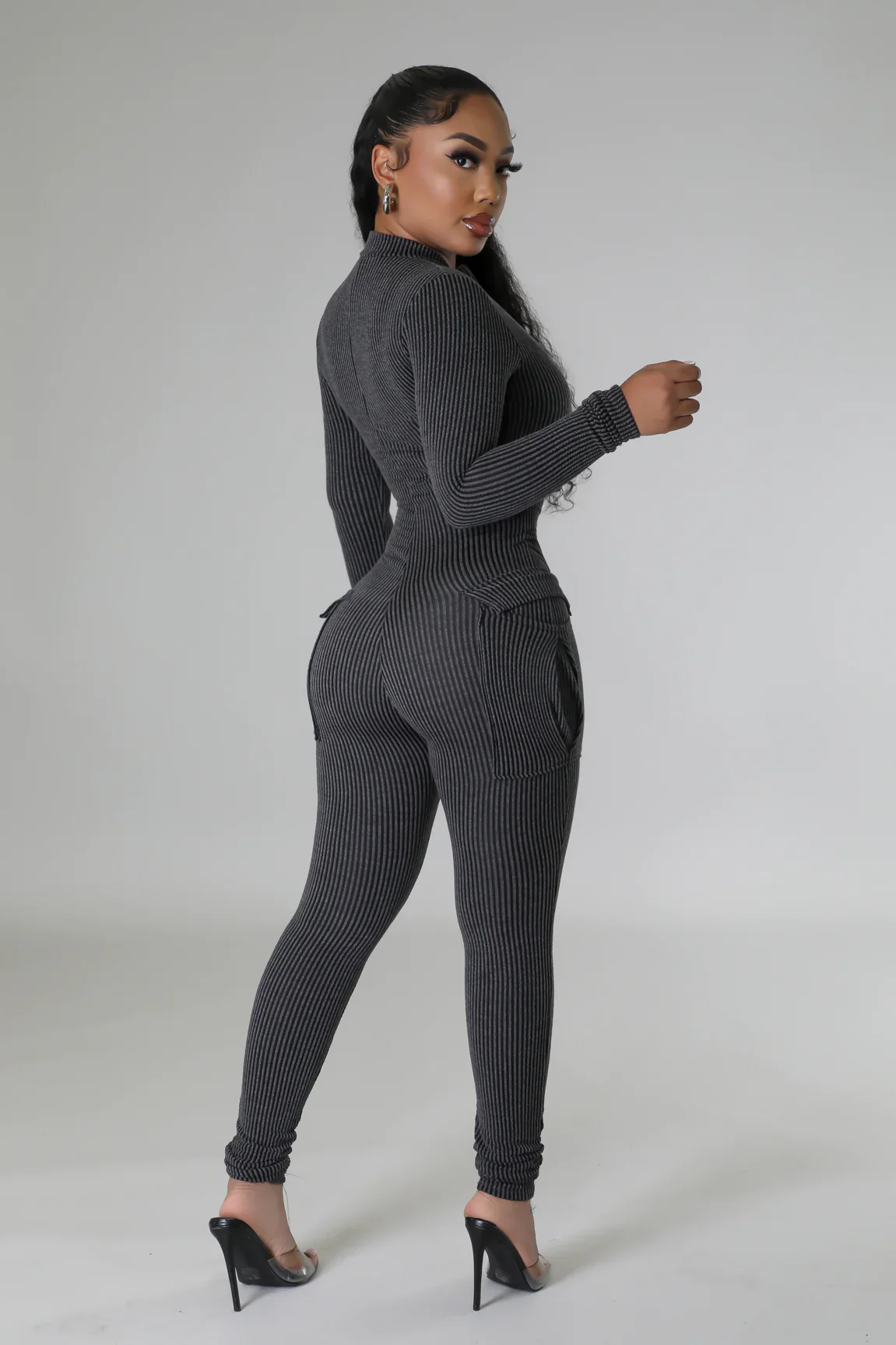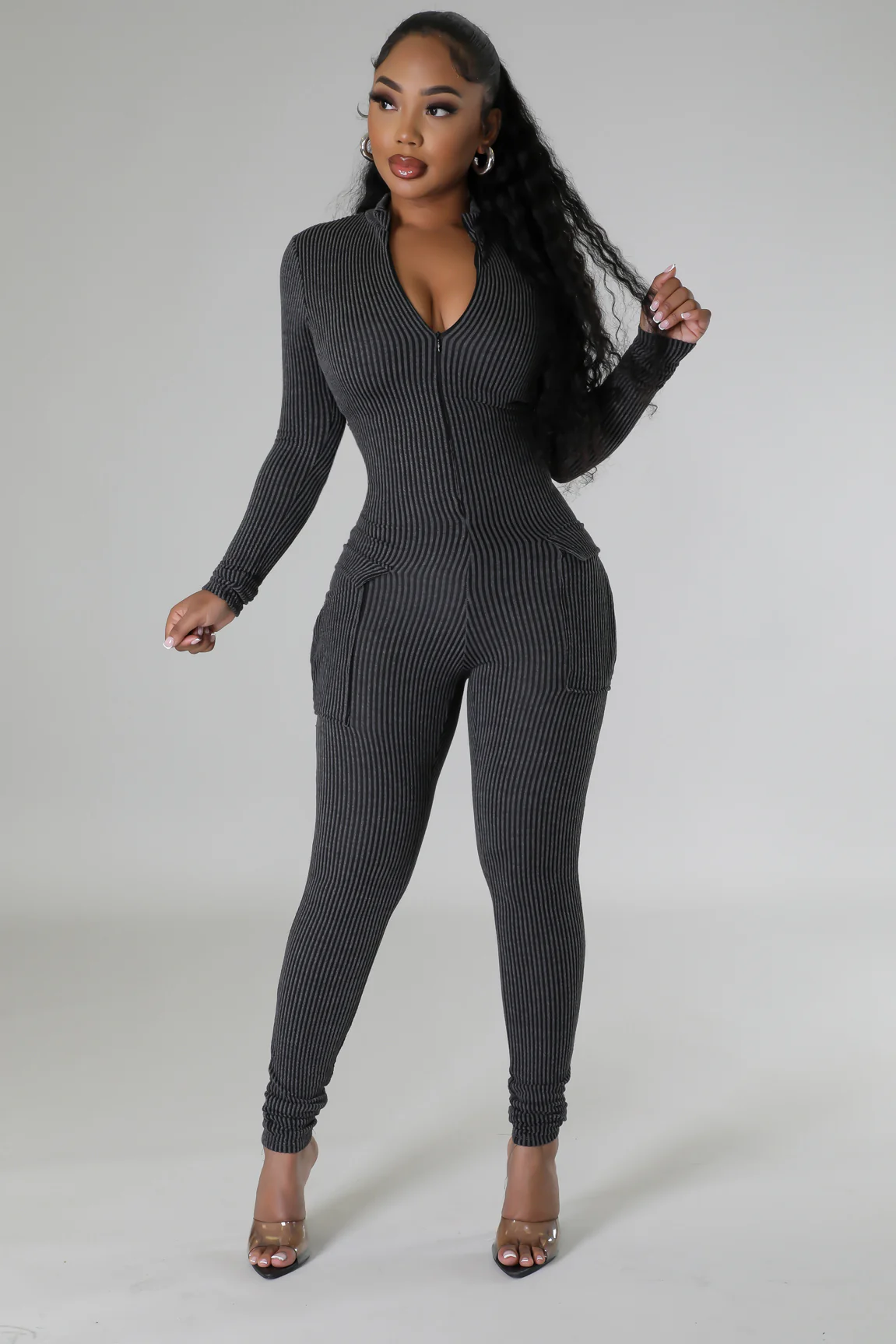 * Combinaison extensible* Col montant* Manche longue* Fermeture à glissière* L’entrejambe est de 32 pouces* 76 % polyester* 21% Rayonne* 3 % d’élasthanne* Lavage à la main à l’eau froide* Le modèle porte une petite taille————————————————————————STATISTIQUES DU MODÈLEHauteur : 5,3″Buste:33″ / Taille:28″ / Hanches:42″