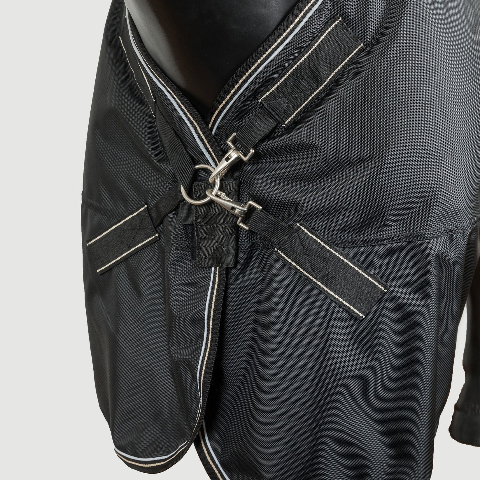 ❄️ La couverture Obsidian 300 g est la solution idéale pour garder votre cheval au chaud, au sec et en pleine forme pendant l’hiver. Avec son rembourrage thermique de 300 g, elle assure une isolation optimale face aux basses températures, tandis que le cou amovible de 200 g apporte une protection intégrale contre le froid.