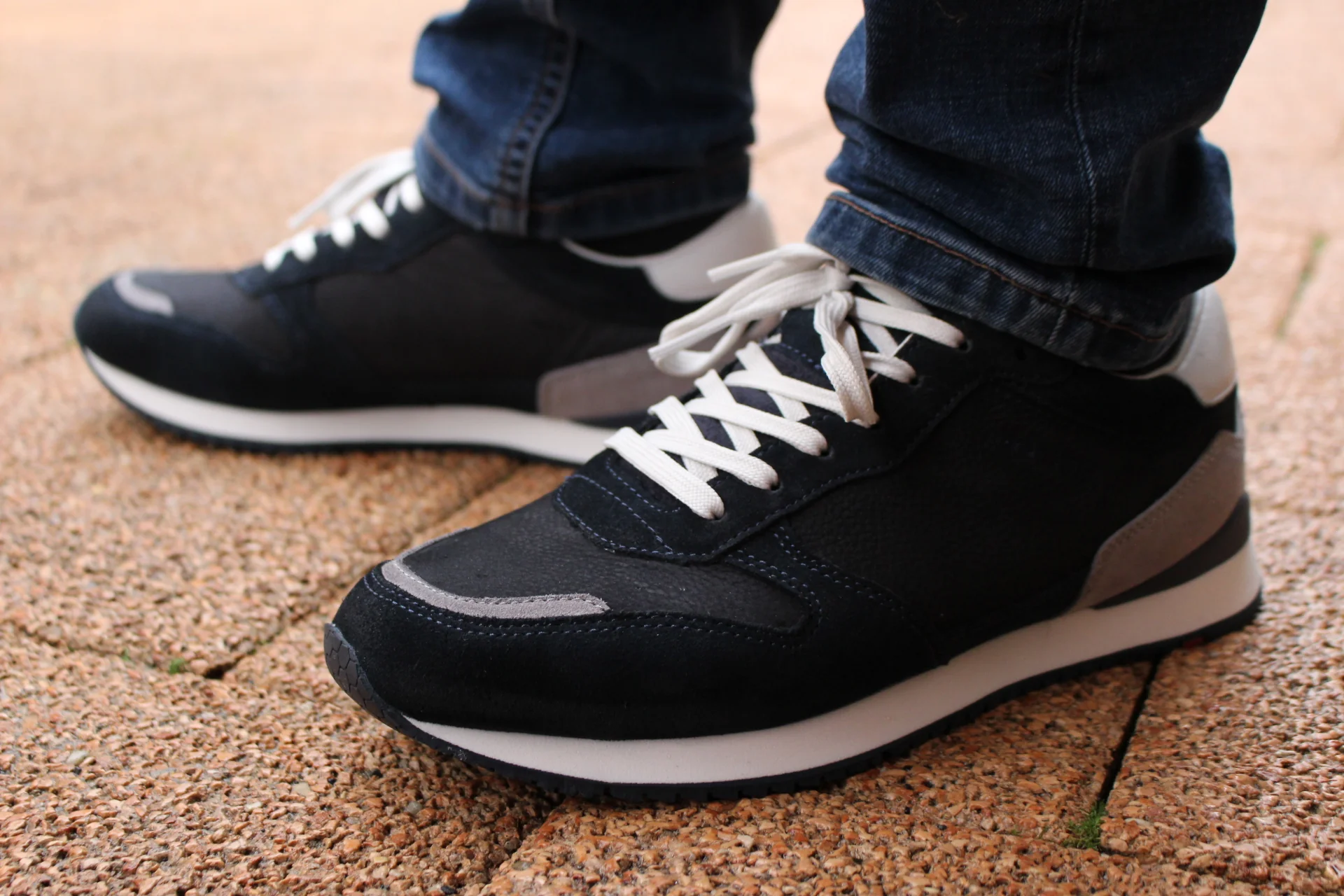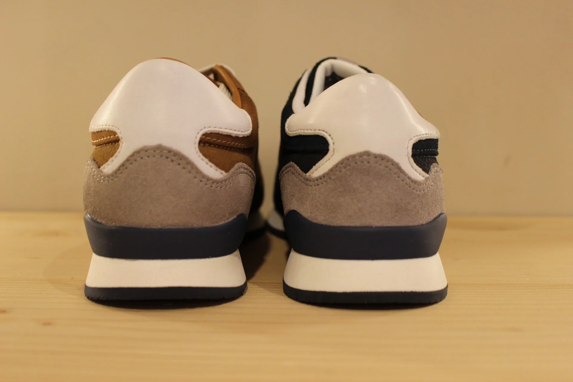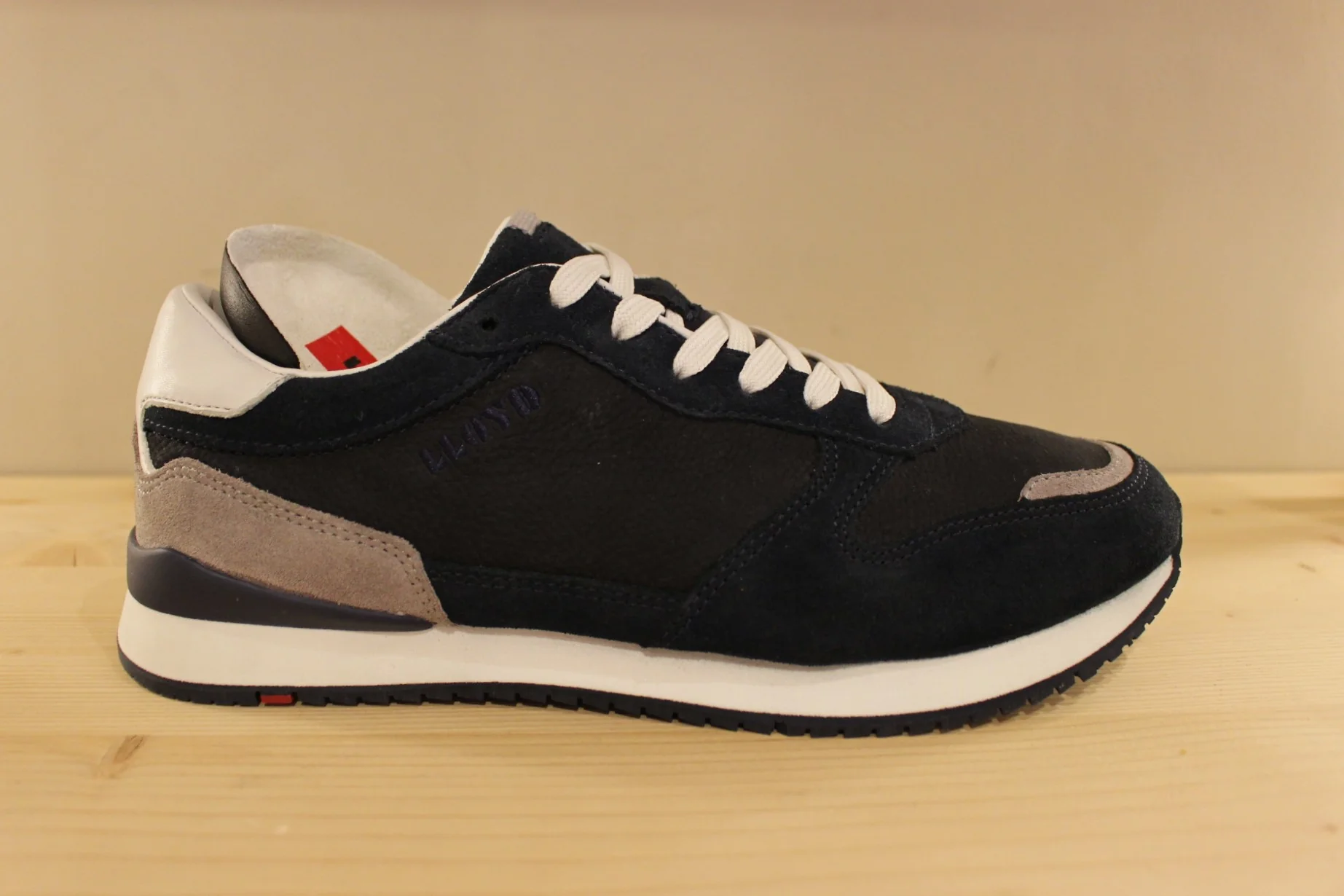Chaussures LLOYD – Elmore. Sneaker en cuir de couleur taupe ou de couleur bleu. Velours gris et cuir blanc sur l’arrière. Serrage lacets en coton blanc. Chaussures doublées cuir et éponge. Semelle interne amovible. Semelle externe en gomme crantée de 1.5 cm. Talon de 0.5 cm. Chaussures très légères..