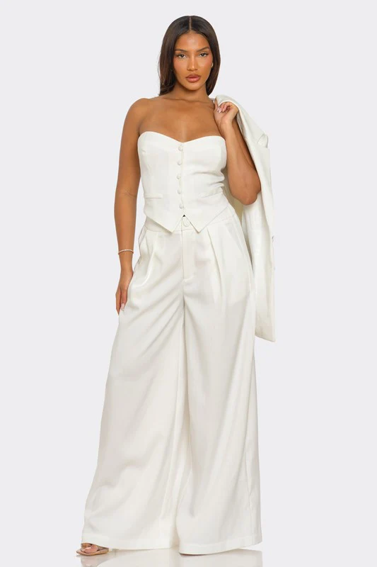 Top bustier bouton devant pantalon large blazer