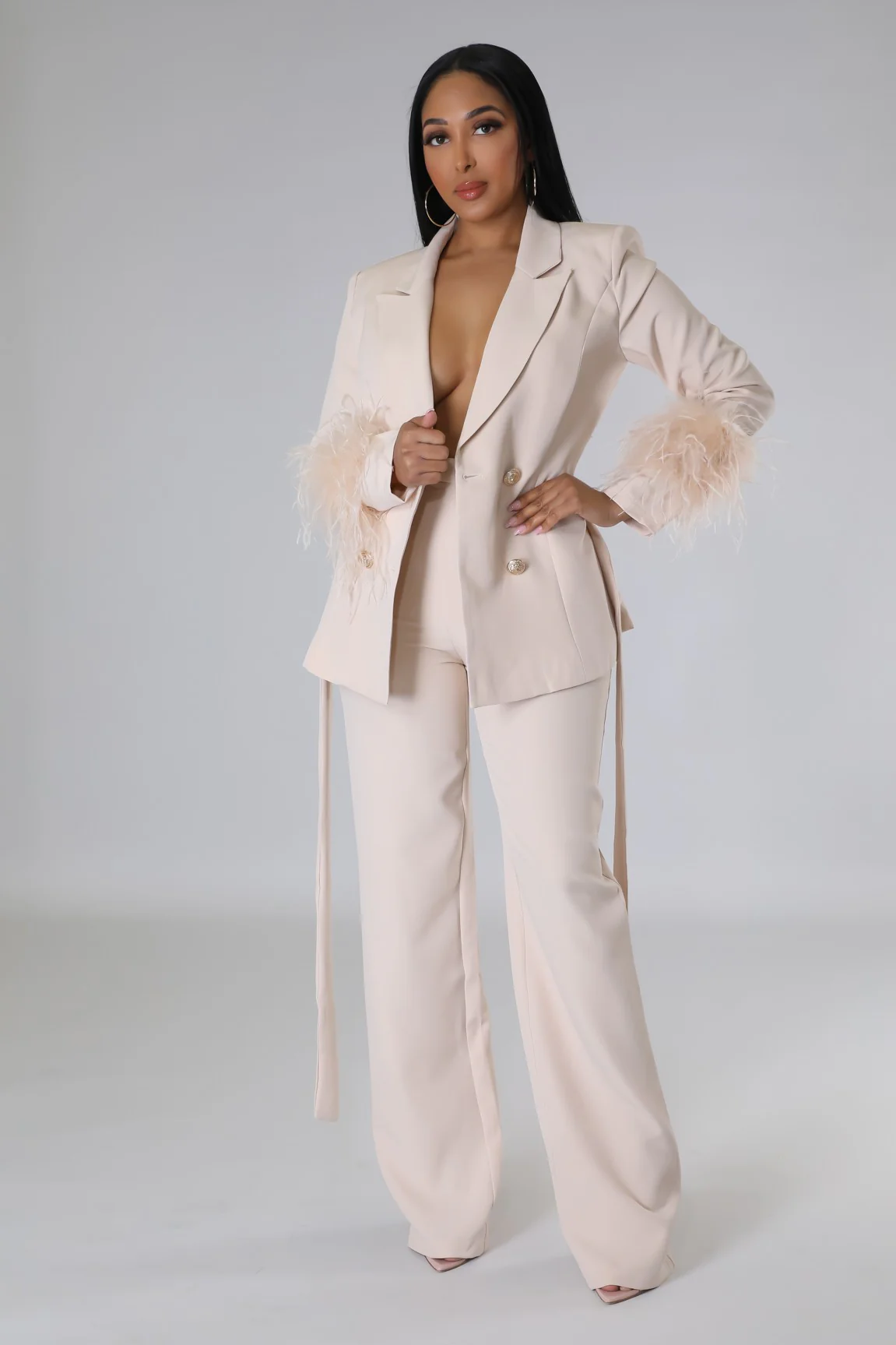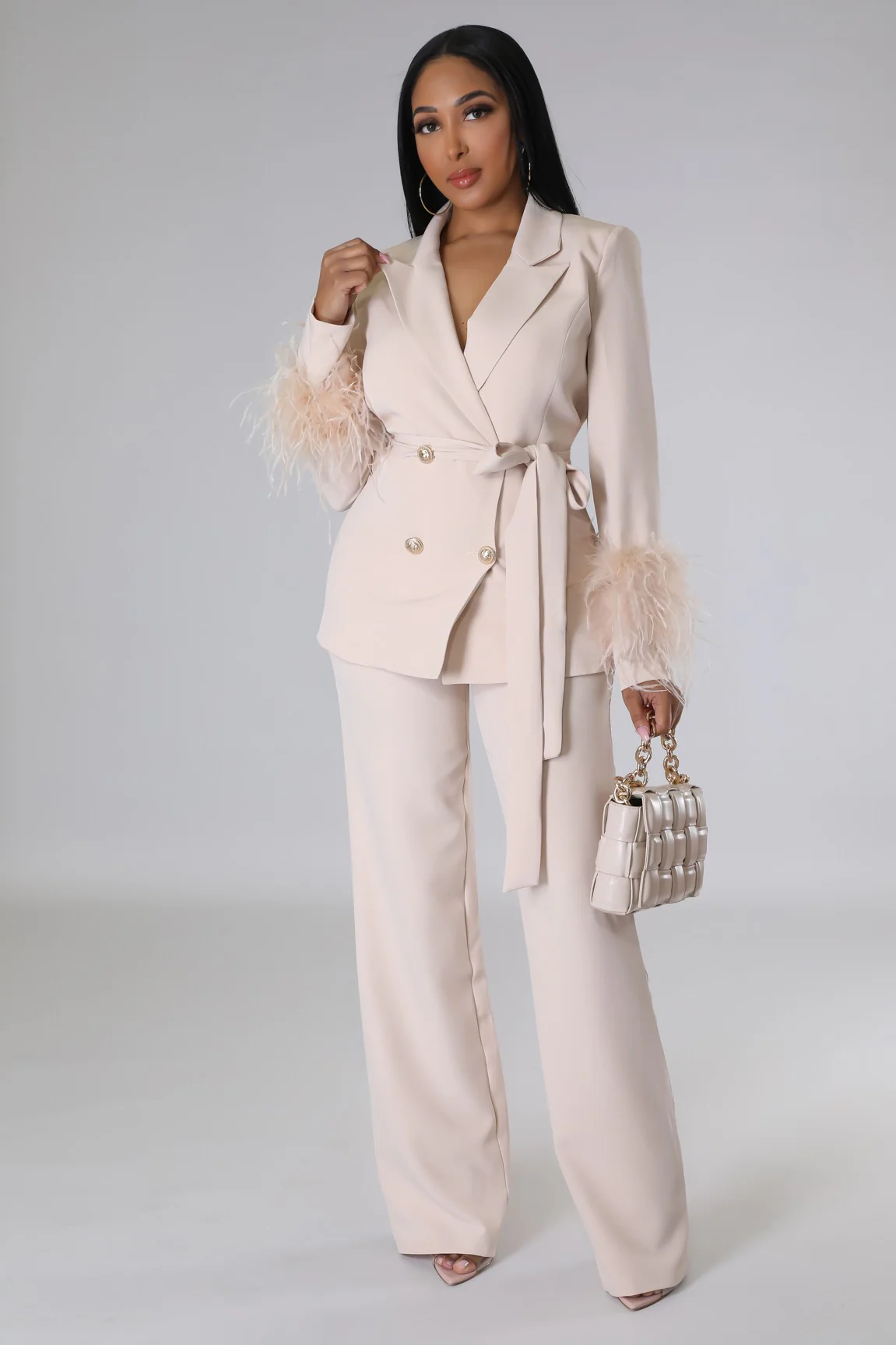 Ensemble deux pièces Haut blazer Collier Manches longues Fausses plumes Taille à nouer Fermeture boutonnée Pantalon taille haute Semi-extensible Jambes droites Fermeture à glissière latérale 100% Polyester Lavage à la main à froid L’entrejambe est de 34 pouces Le modèle porte une petite taille___________________________________________ STATISTIQUES DU MODÈLE Hauteur : 5,6″ Buste : 32″ / Tour […]