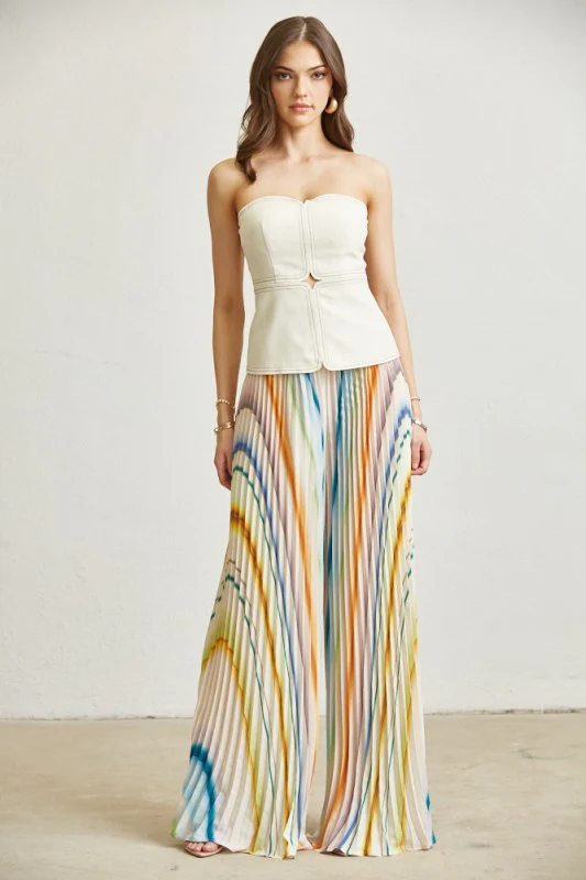 Top Sans bretelles Tasses légèrement rembourrées Fermeture éclair arrière centrale Doublé Étirement léger Tissu : Poly Pantalon Ceinture Corsage plissé Jambes larges Fermeture éclair arrière centrale Montée : 12″ Entrese : 34″ Tissu : Poly Le mannequin porte une taille Small. *La couleur du produit vue sur un moniteur peut varier légèrement par rapport aux […]