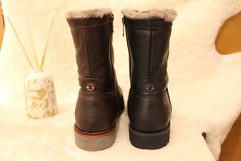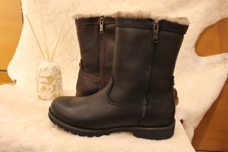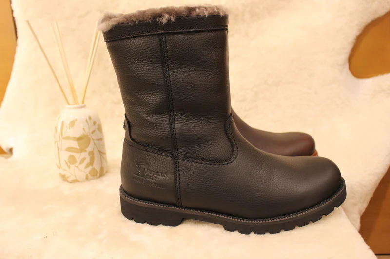Bottines PANAMA JACK modèle Fedro Igloo. Fabrication Espagnole. Bottines d’hiver pour hommes en cuir gras de couleur noir ou de couleur Castano (chatain). Cuir traité waterproof. Bottines doublées en mouton. Zip du côté interne pour faciliter le passage du pied. Semelle interne en mouton amovible. Hauteur de la tige 21 cm. Semelle extérieure en gomme épaisse et crantée. Existe du 40 au 45