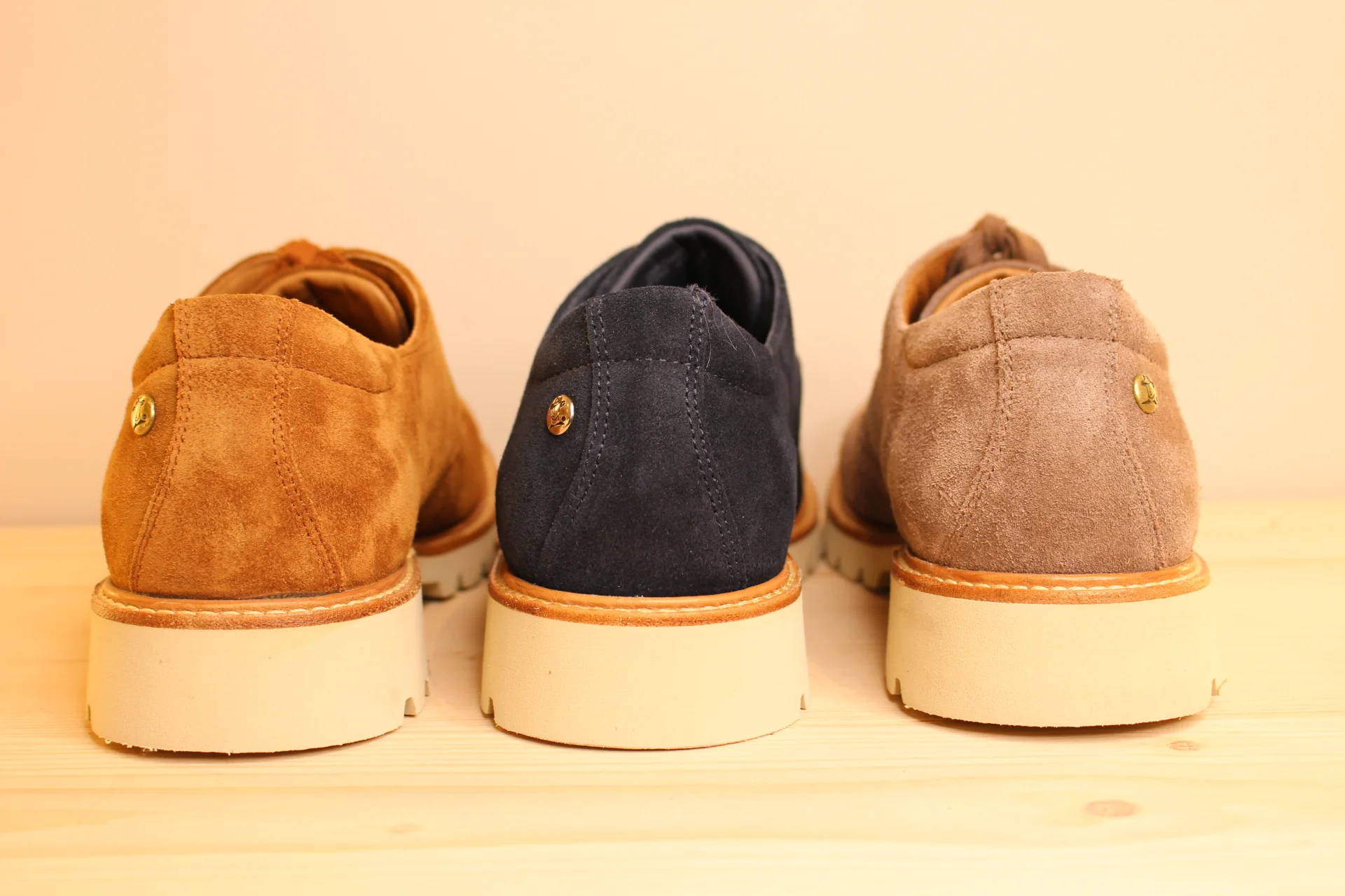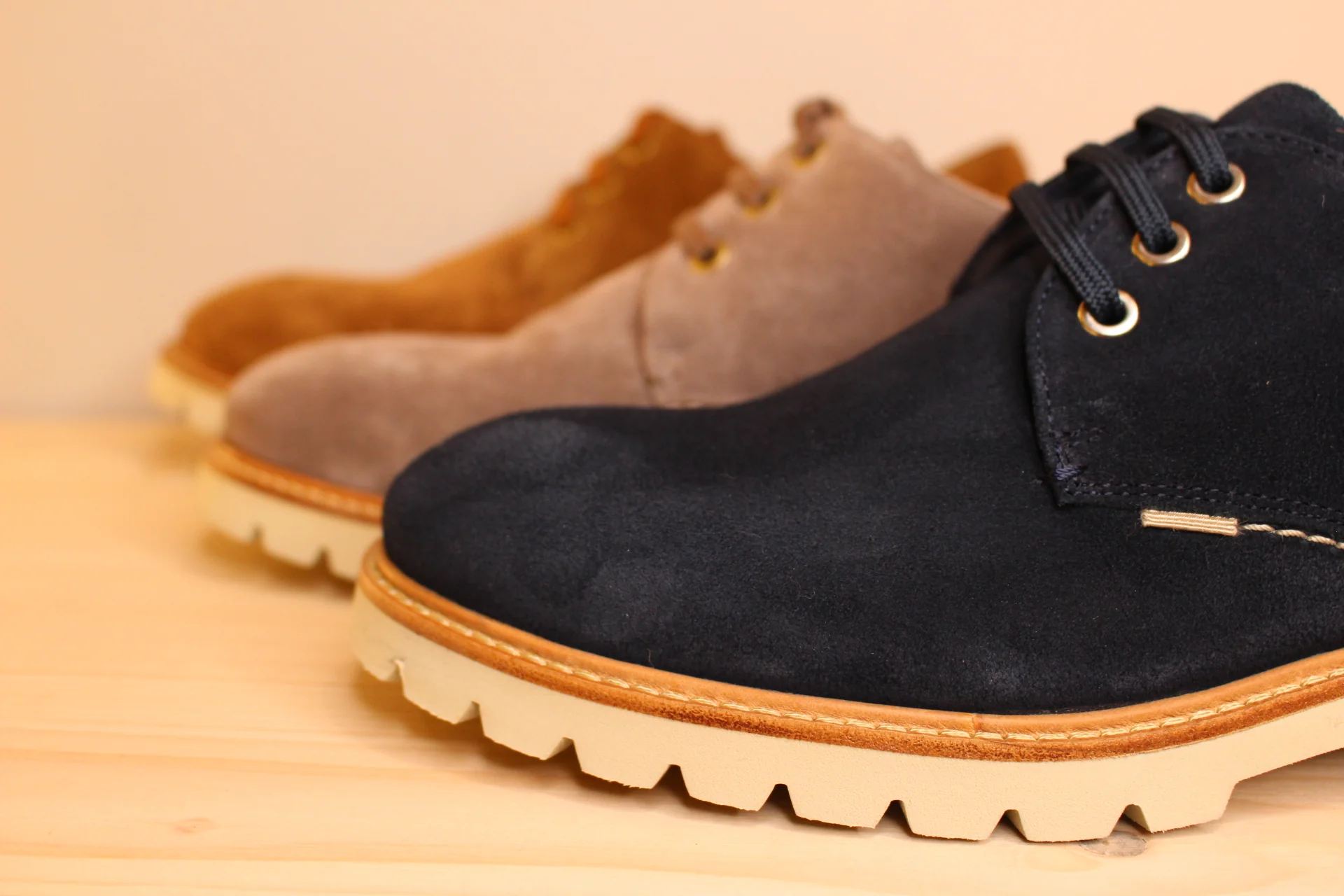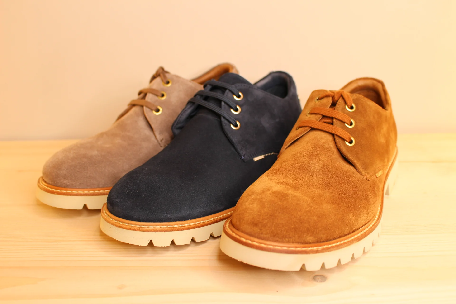 Chaussures PANAMA JACK modèle Gadner. Fabrication Espagnole. Chaussures coupe derby en cuir velours de couleur bleu, marron ou de couleur grise. Chaussures doublées cuir. Semelle intérieure amovible. Serrage laçets coton ton sur ton. Semelle extérieure épaisse de 1.5 cm, en gomme crantée de couleur beige. Cousu trépointe naturelle. Talon de 1.5 cm. Existe du 40 au 45