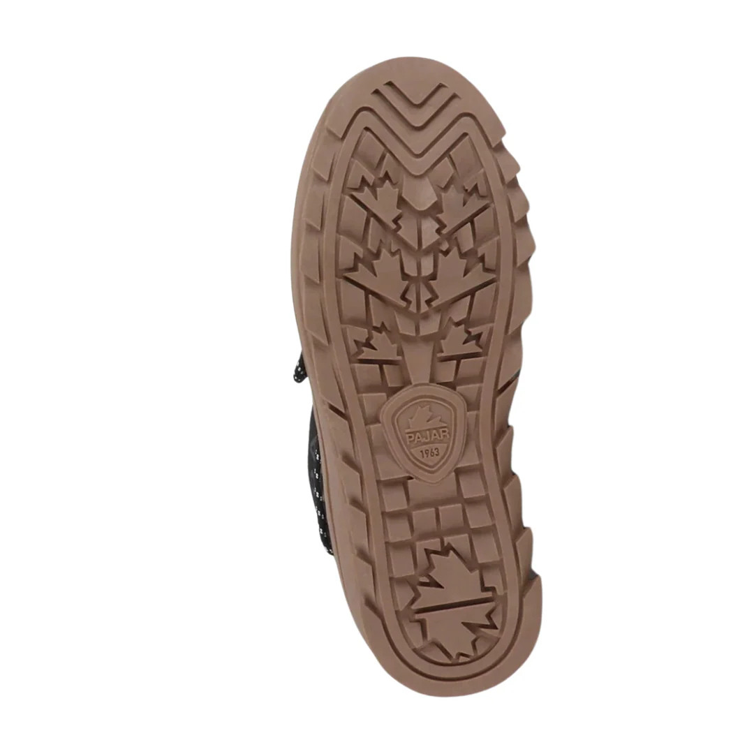 Préparez-vous à affronter l’hiver avec style grâce à la GALAXY MINI SP de Pajar. Conçue pour offrir un confort inégalé jusqu’à -30 °C / -22 °F, cette botte imperméable combine un design moderne et des matériaux performants. Sa tige en nylon et nubuck végan lui confère à la fois durabilité et allure contemporaine. Dotée d’une semelle intérieure ultralégère et amovible, elle s’adapte parfaitement à votre quotidien, tandis que sa semelle à crampons en caoutchouc thermique avec plateforme antidérapante assure une adhérence optimale, même sur la glace. Compacte et polyvalente, la GALAXY MINI SP est pensée pour celles qui veulent rester élégantes et bien protégées dans toutes leurs aventures hivernales.
