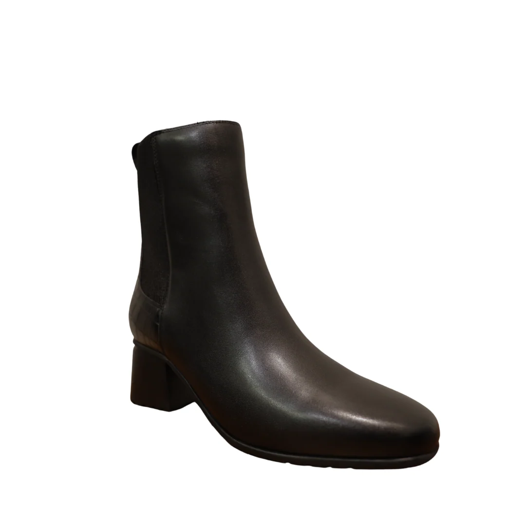 La botte Grace vous offrira la possibilité de faire face à l’hiver avec élégance et confort. Une magnifique botte traditionnelle en cuir noir épaisse et imperméable, avec des éléments en faux alligator et un dos élastique pour un confort optimal.