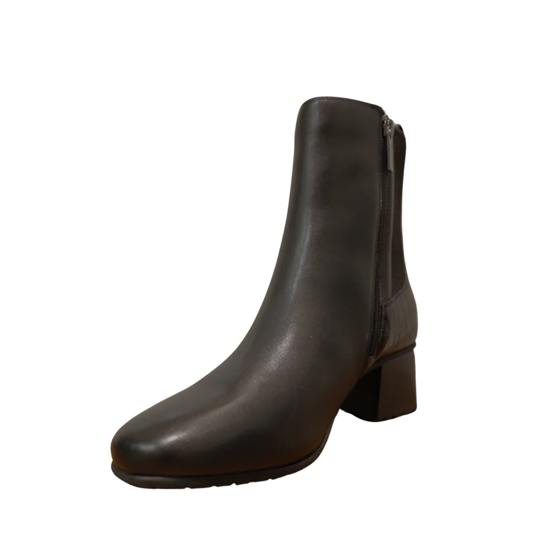 La botte Grace vous offrira la possibilité de faire face à l’hiver avec élégance et confort. Une magnifique botte traditionnelle en cuir noir épaisse et imperméable, avec des éléments en faux alligator et un dos élastique pour un confort optimal. Hauteur du talon : 2 pouces Semelle antidérapante Fermeture éclair latérale Doublé feutre pour confort […]