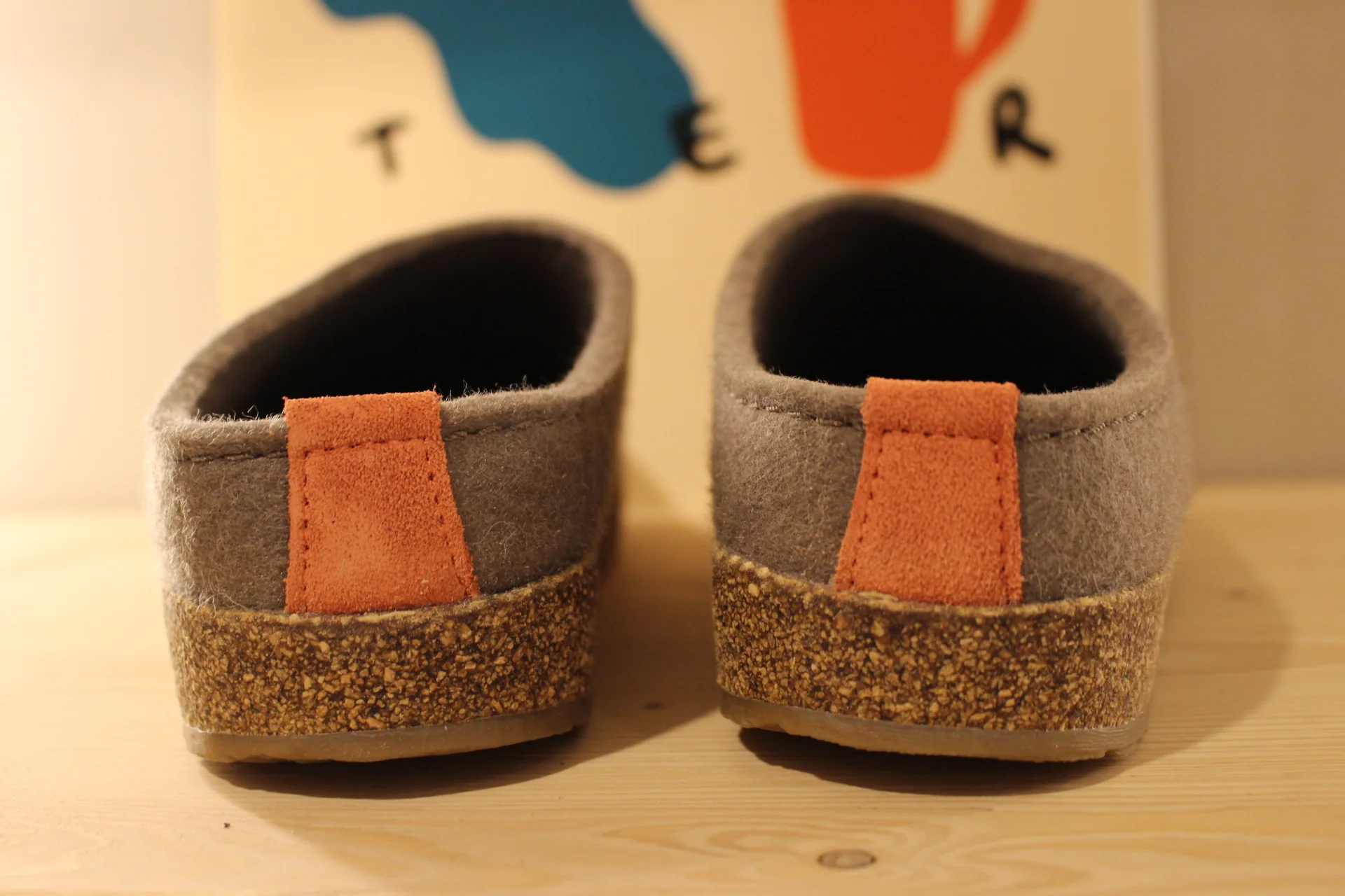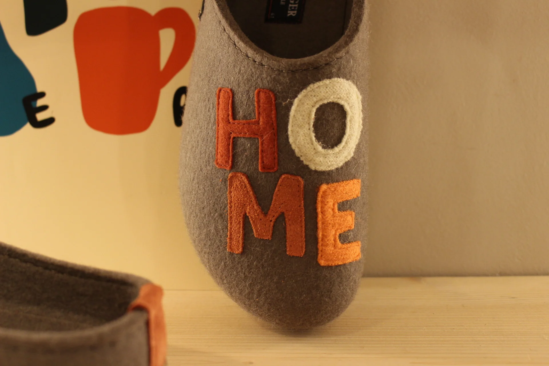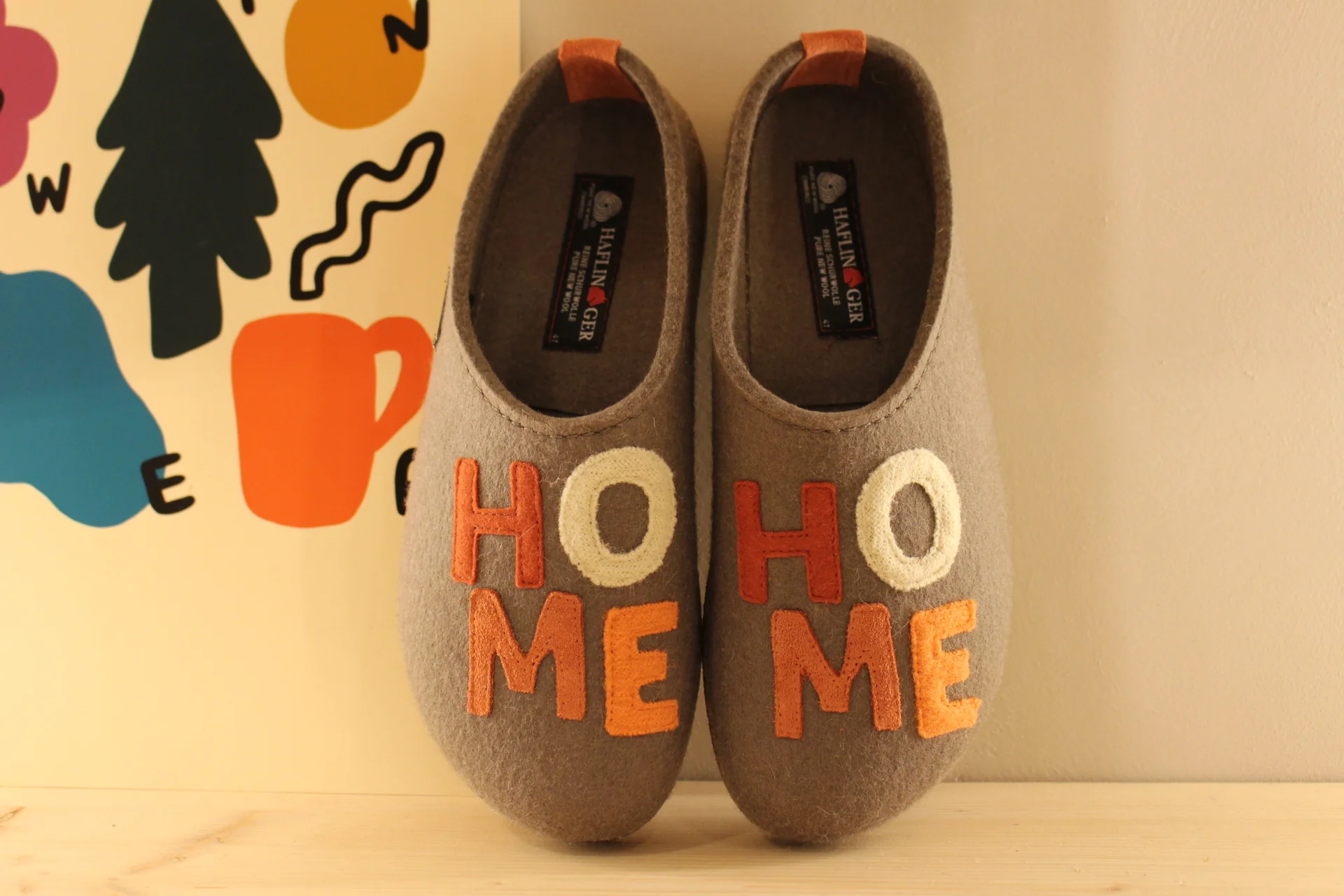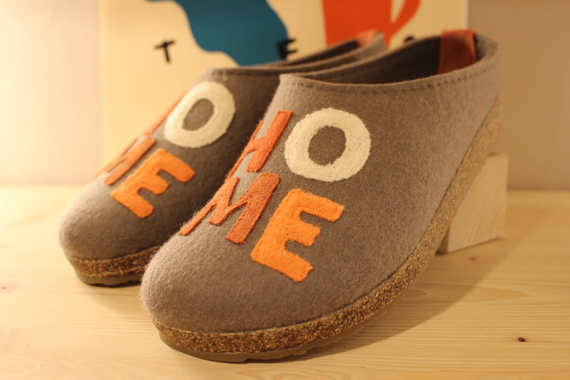 Chaussons HAFLINGER – Grizzly Home. Chaussons coupe sabot en pure laine de couleur marron clair. HOME coloré sur le pied. Retour à l’arrière assez montant pour permettre un meilleur maintien à la marche. Semelle interne en laine avec maintien de la voûte plantaire. Bloc externe montée en liège caoutchouté. Semelle externe en gomme anti-dérapante. On peut aussi marcher en extérieur !!! Il y a du répondant. Prenez une pointure de moins le chaussant est généreux.