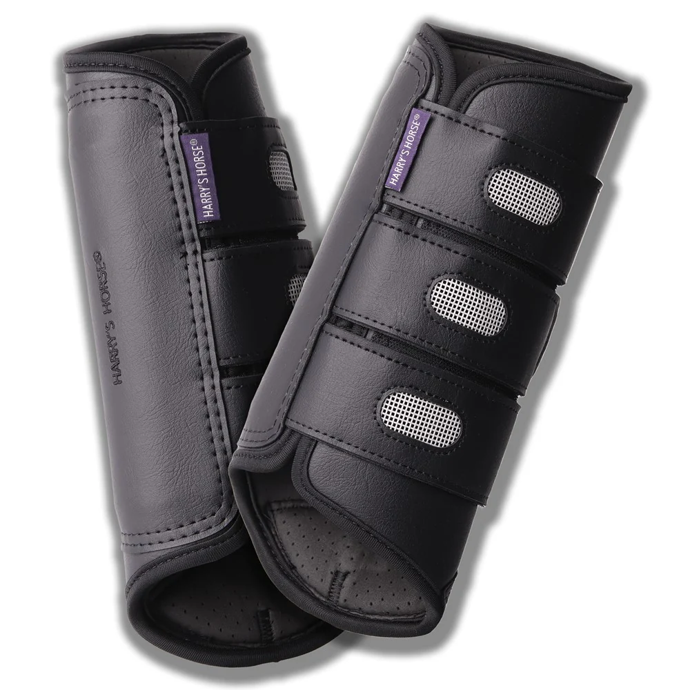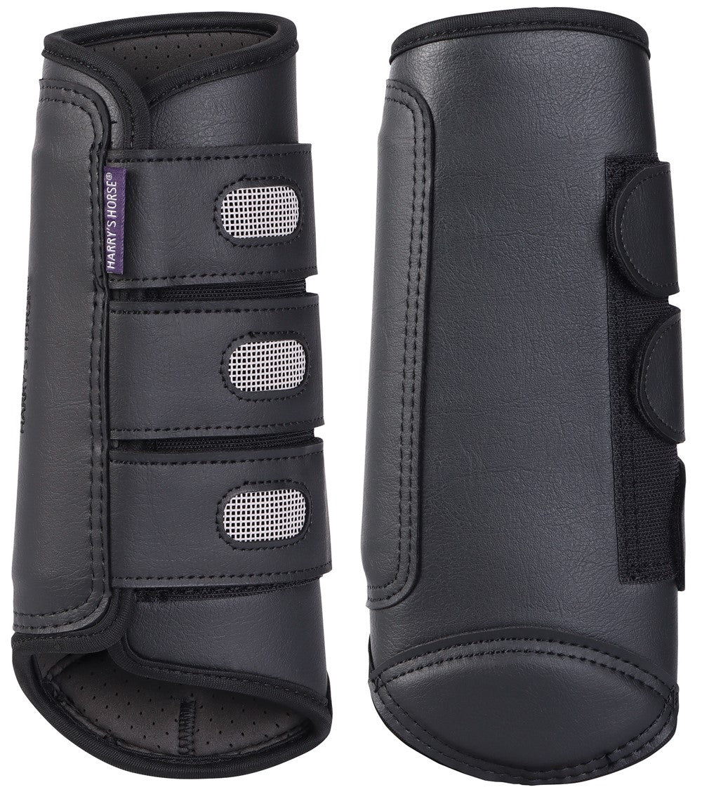 Ces guêtres de concours complet sont super légères, flexibles, ventilées, ont une doublure intérieure antidérapante et sont fabriquées en matériau extérieur « PVC-cuir ». Elles ont un très bon ajustement, des fermetures velcro solides et sont très confortables pour le cheval.