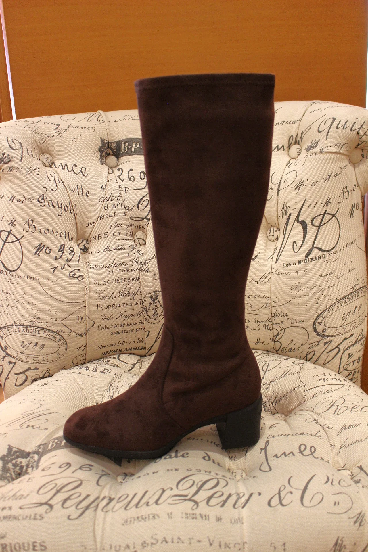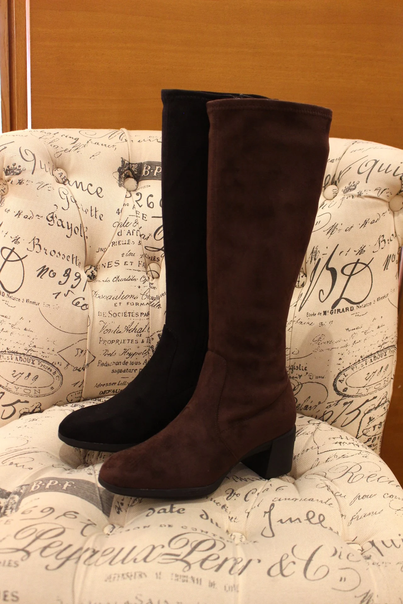 Bottes WONDERS – H-6707. Fabrication espagnole. Bottes en cuir et suédine de couleur chocolat ou noir. Stretch sur la tige. Zip du côté interne. Chaussures doublées cuir et suédine. Semelle interne à mémoire de forme. Tige de 37 cm. Semelle externe en gomme de 1.5 cm. Talon de 5.5 cm. Bottes extra légère et flexible.