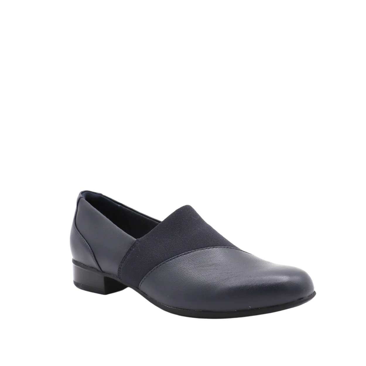 La chaussure à enfiler JULIET GEM allie des matériaux de première qualité à un talon à effet empilé ultra-facile à porter et une foule de caractéristiques de confort. La tige en cuir ultradoux est rehaussée par des panneaux extensibles qui mettent en valeur parfaitement le pied, tandis que l’assise plantaire moelleuse signature de Clarks et la semelle extérieure ultra-adhérente permettent de garder les pieds sur terre, du travail au week-end.