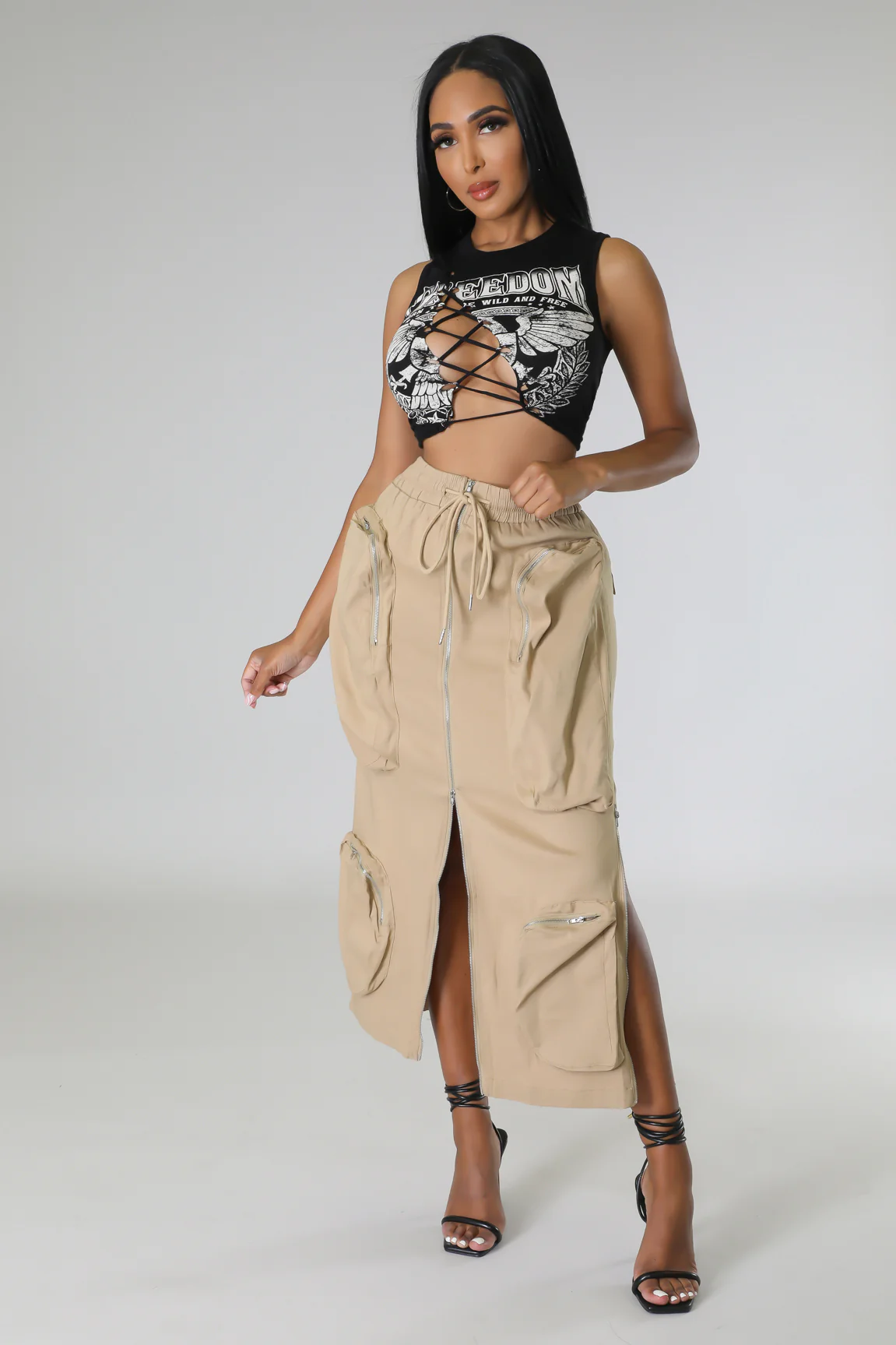 Soyez le premier à laisser votre avis sur “Jupe taille haute cargo beige avec des poches”