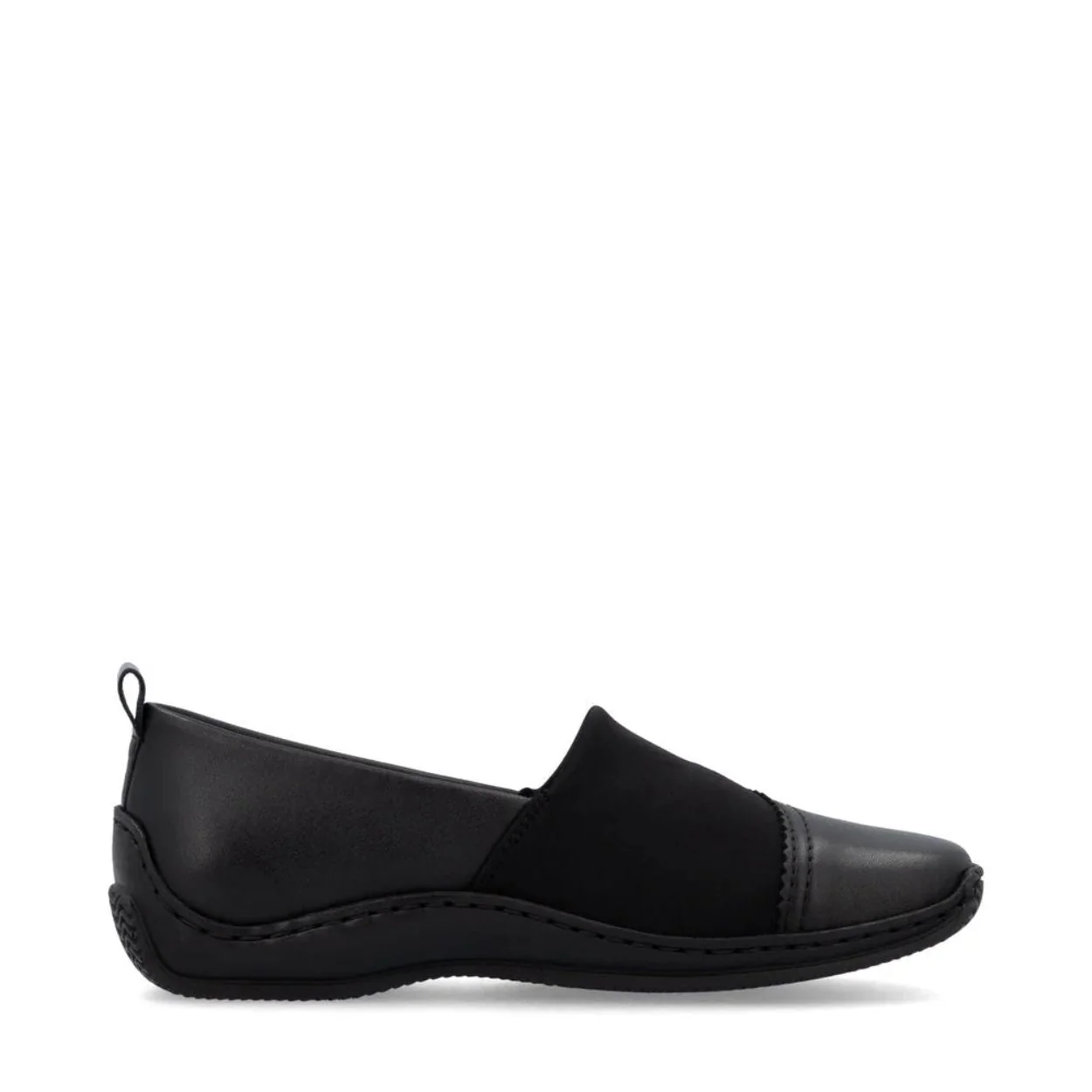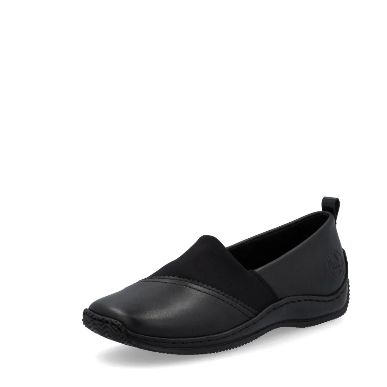 Style décontracté, confort garanti ! Adoptez un look moderne et un bien-être optimal avec ces mules noires Rieker en cuir lisse.