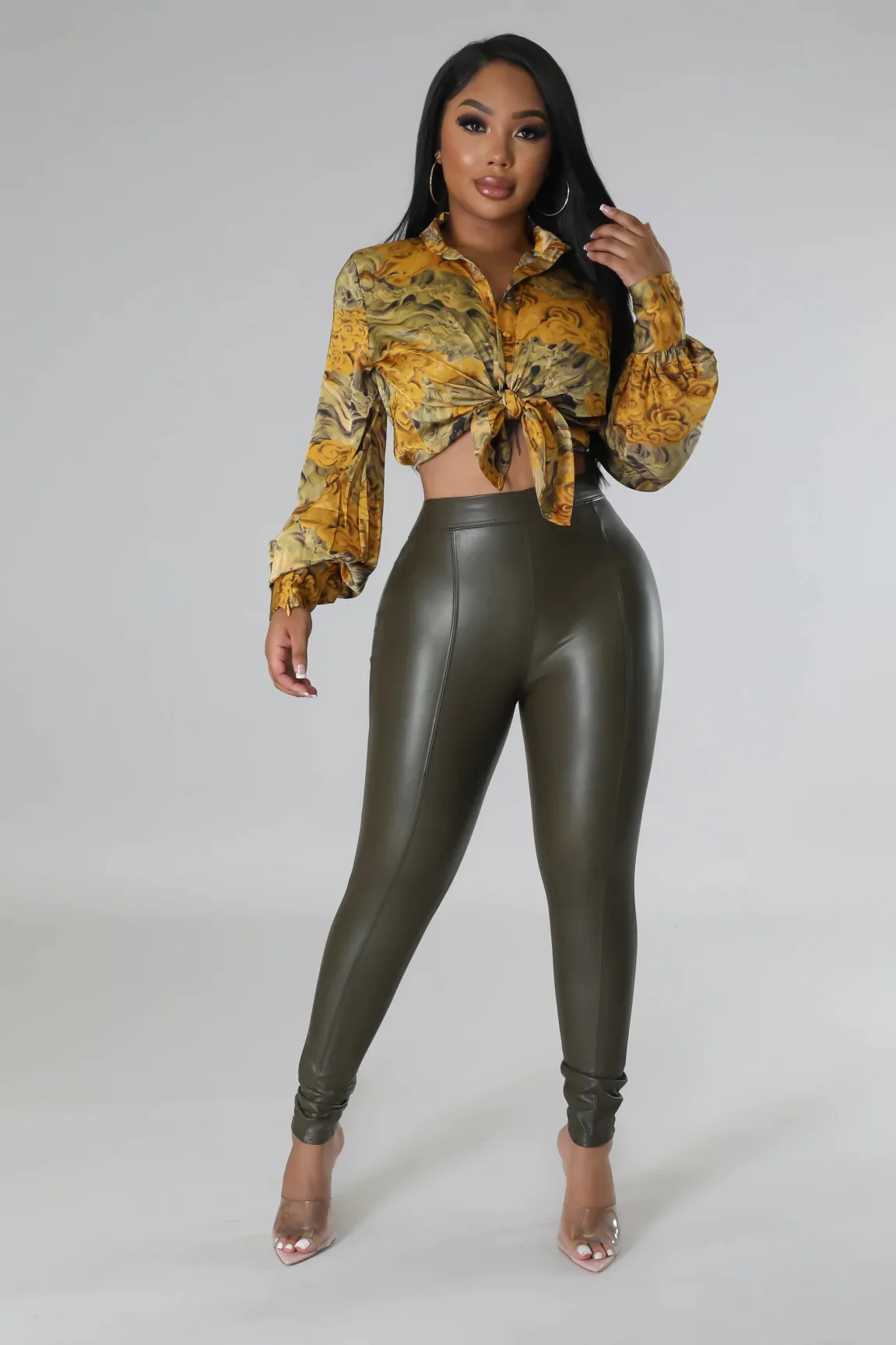 Legging faux cuir taille haute vert olive