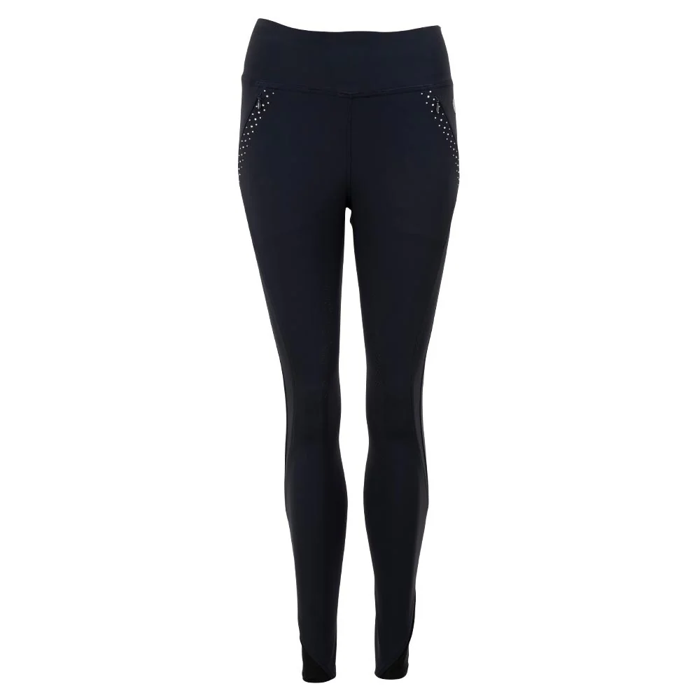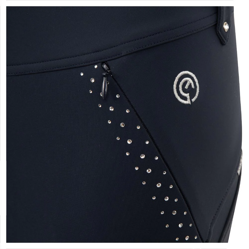 Ces leggings d’équitation confortables avec fond en silicone ont un look luxueux grâce aux diamants d’imitation.