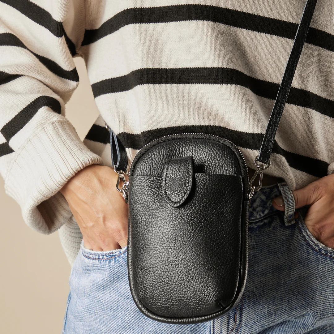 Prenez des risques avec MIA! Cette sacoche en cuir polyvalente vous accompagne dans toutes vos aventures avec sa pochette pratique et sa ganse ajustable. Soyez prêt pour l’aventure avec MIA.