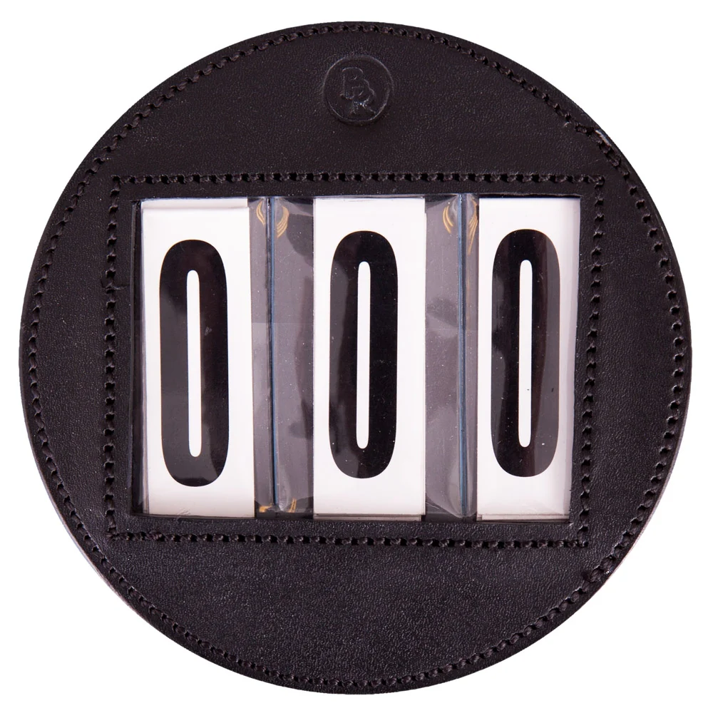 Numéro de départ avec housse ronde en cuir, se fixe facilement au bridon par deux fermetures velcro.