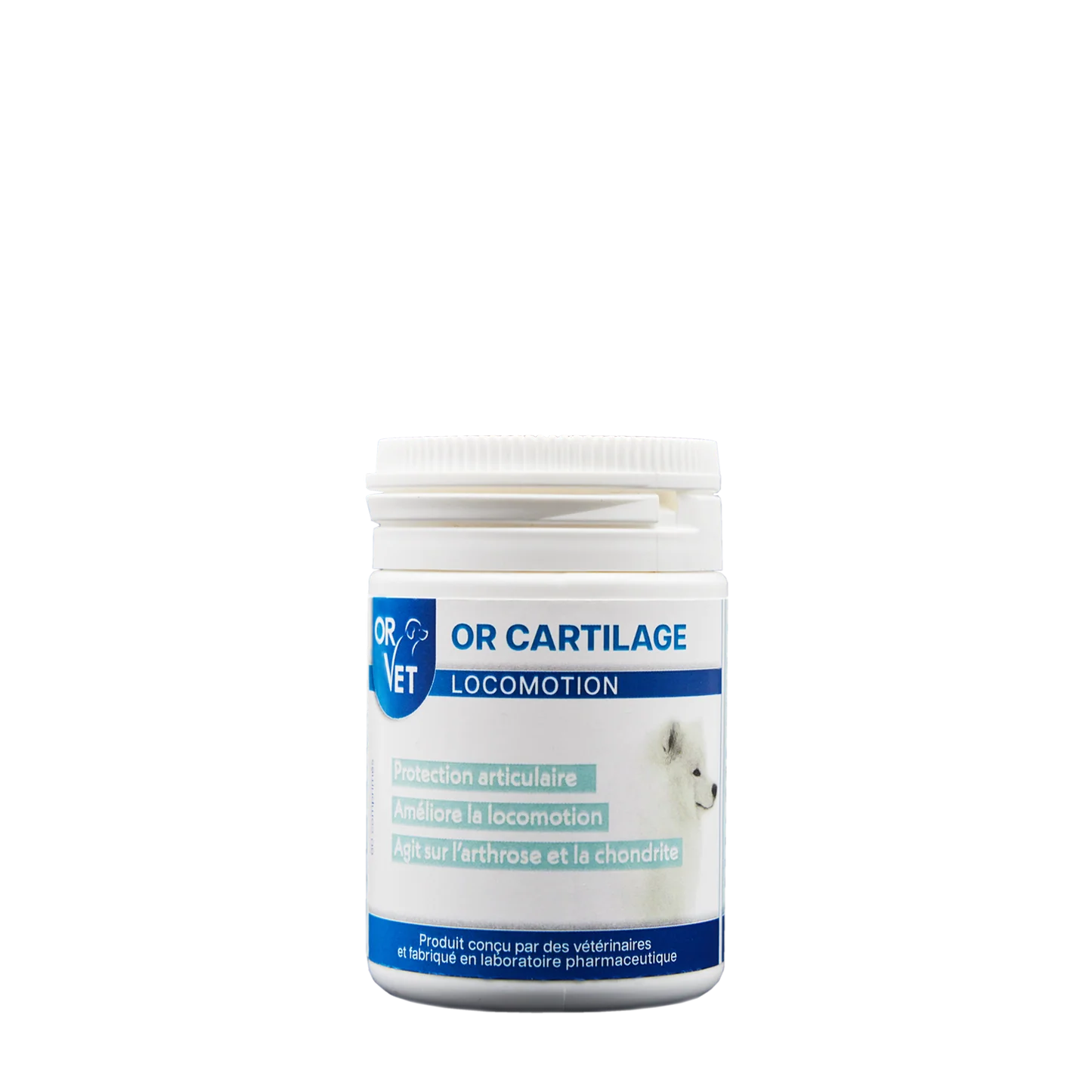 OR CARTI CHIEN est un comprimé complet qui par sa composition innovante et révolutionnaire permet la réparation articulaire (arthrose, chondrite) et améliore la locomotion et la tonicité du chien.