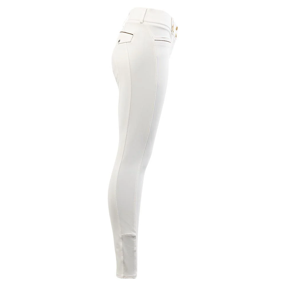 Respirant, régulateur d’humidité, séchage rapide, il reste agréable à porter en toutes saisons. Les poches avant sont décorées d’un élégant passepoil discret en corde, et les faux rabats arrière ajoutent une touche de raffinement. Le fond intégral en silicone assure une adhérence optimale en selle, pour une assise stable et sécurisée.