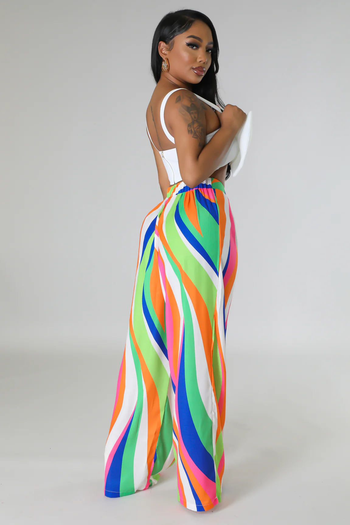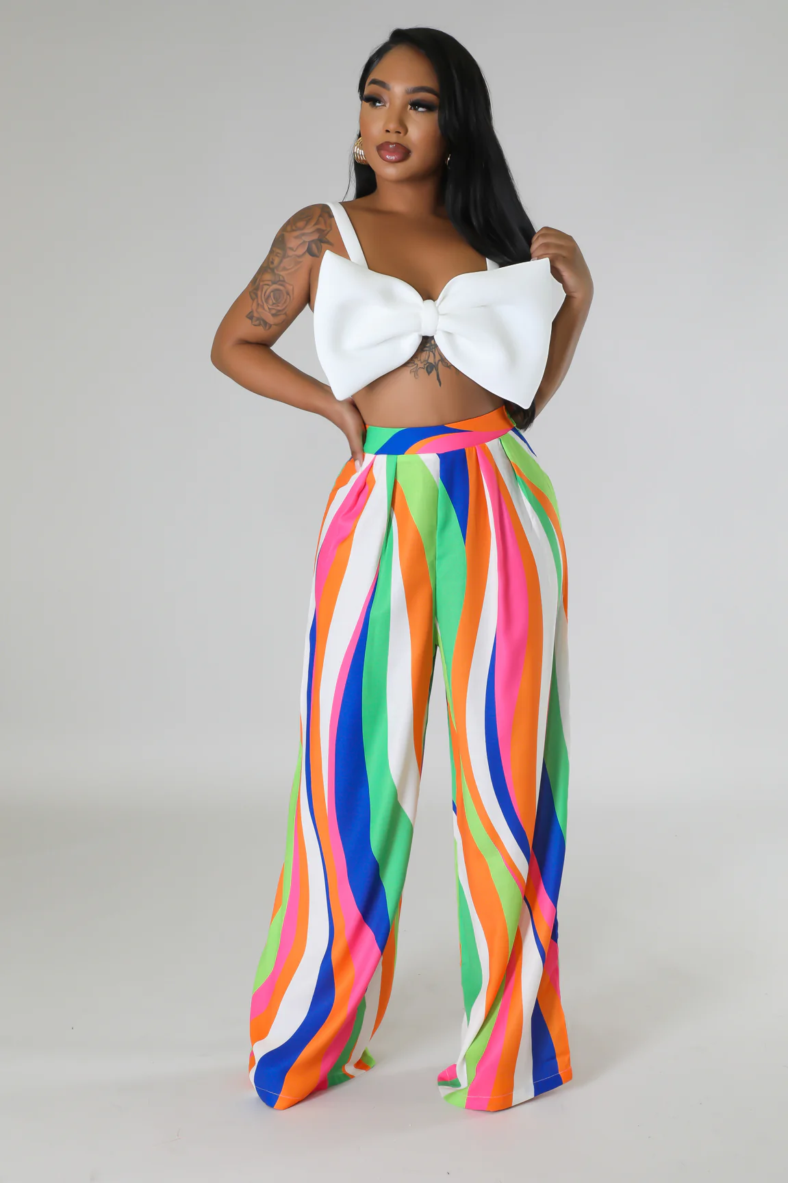* vomir* Jambes larges* Ceinture élastique* Pas de fermeture* 100% Polyester* Lavage à la main à froid* L’entrejambe est de 33 pouces* Le modèle porte une petite taille__________________________________________STATISTIQUES DU MODÈLEHauteur : 5,3″Buste : 33″ / Tour de taille : 28″ / Hanches : 42″