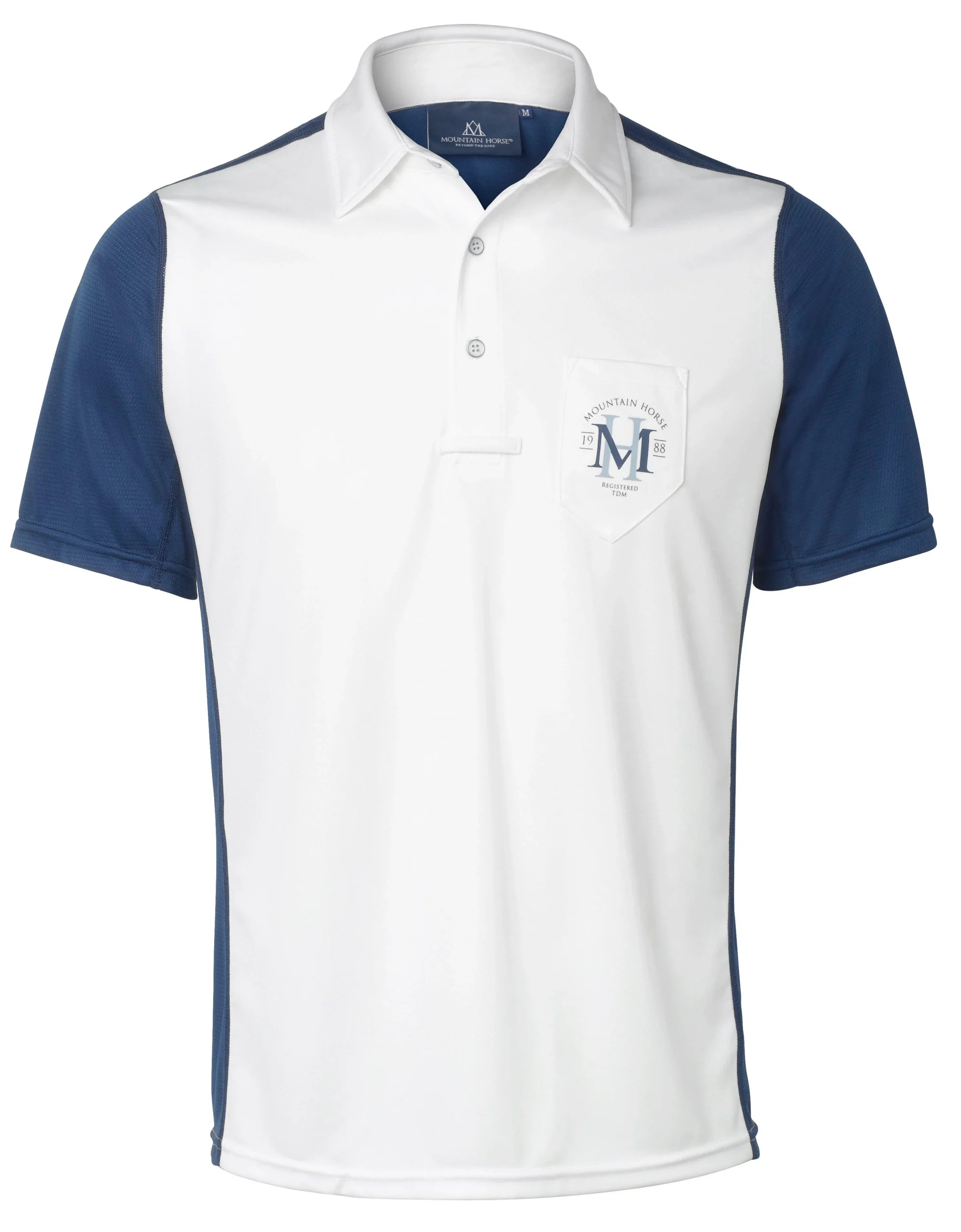 Haut technique pour homme bicolore. Fabriqué dans un tissu à séchage rapide qui évacue l’humidité de votre corps. Parfait pour une chaude journée d’été. • Patte avant avec fermeture boutonnée • Logo MH sur la poitrine • Logo réfléchissant à l’arrière Matériau : Polyester Coloris : Blanc/Bleu marine