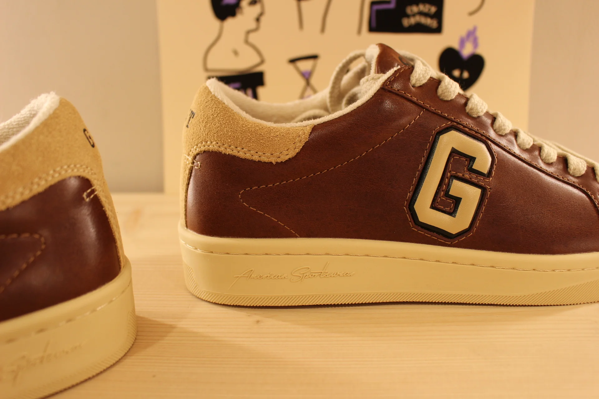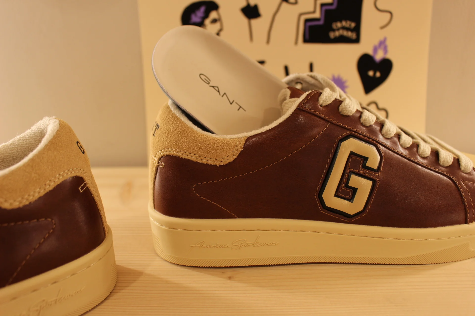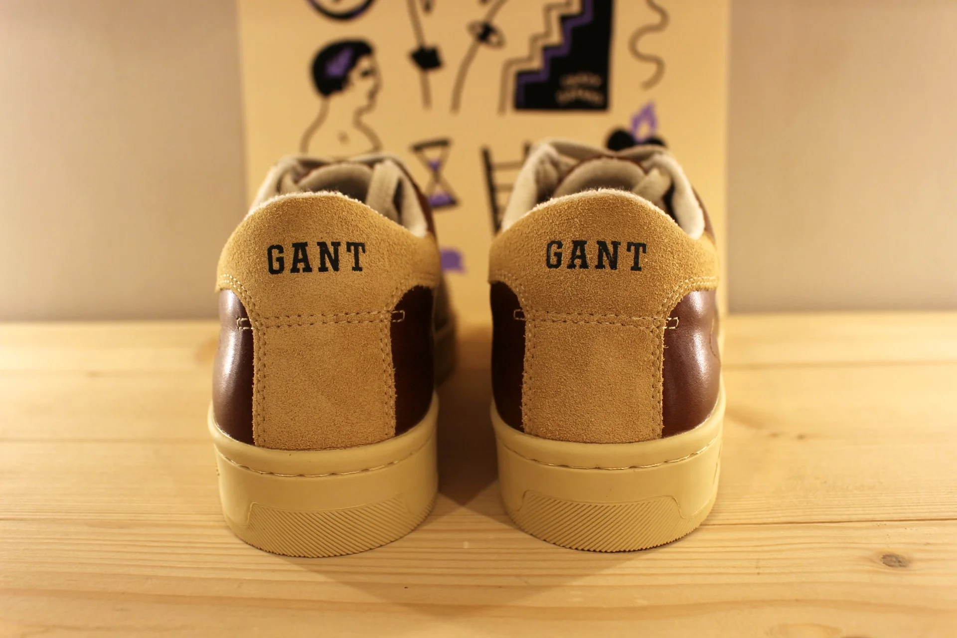 Chaussures GANT – Prepus. Sneakers homme en cuir de couleur marron chocolat et caoutchouc beige sur le devant. Velours beige sur l’arrière. Chaussures doublées cuir et éponge. Serrage lacets coton. Semelle interne amovible. Semelle externe en gomme de 3 cm. Talon de 0.5 cm. J’ADORE !!! Elle est très class.