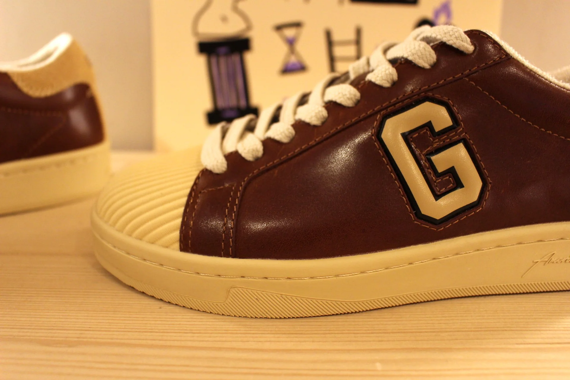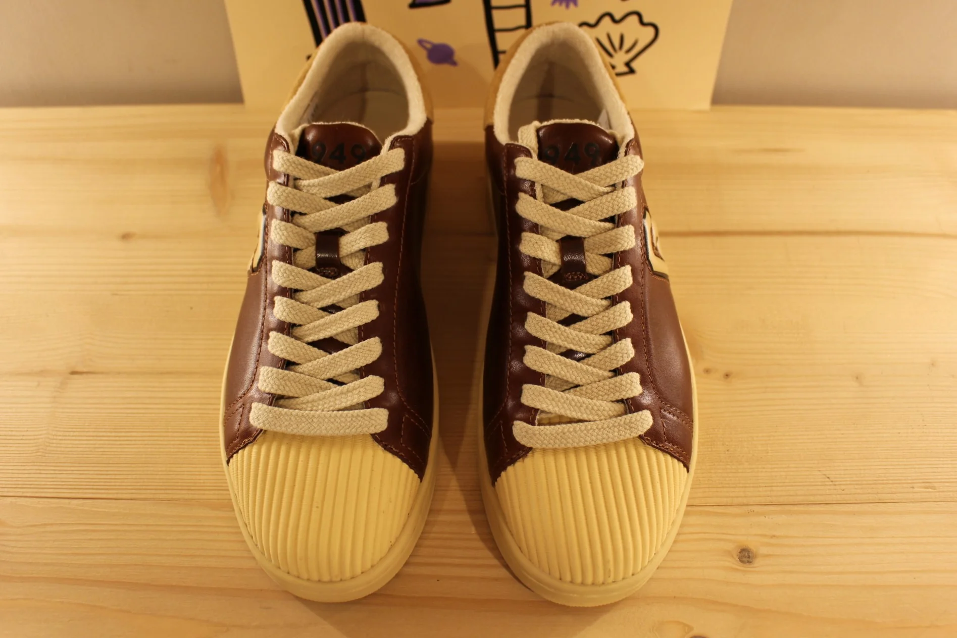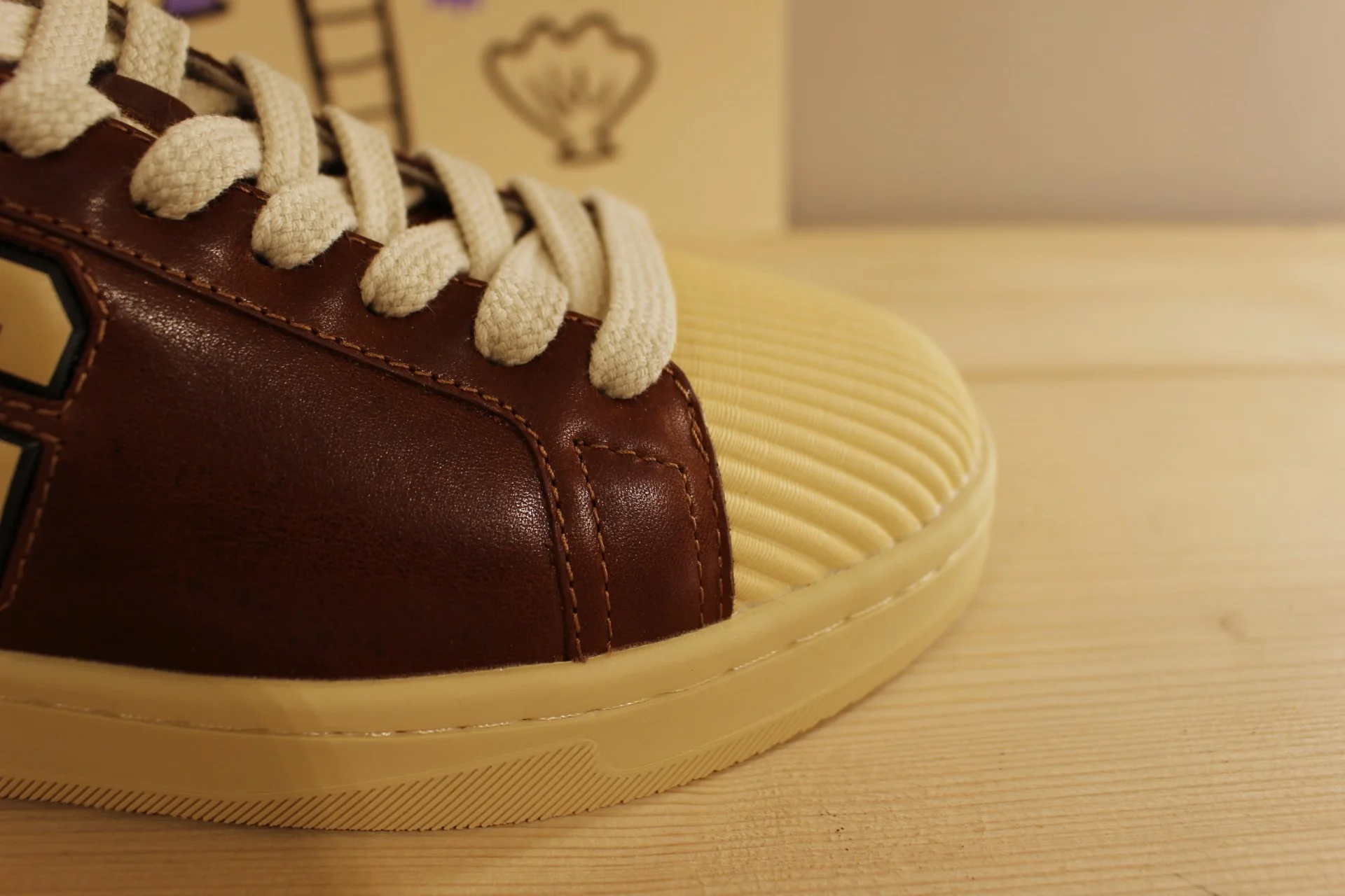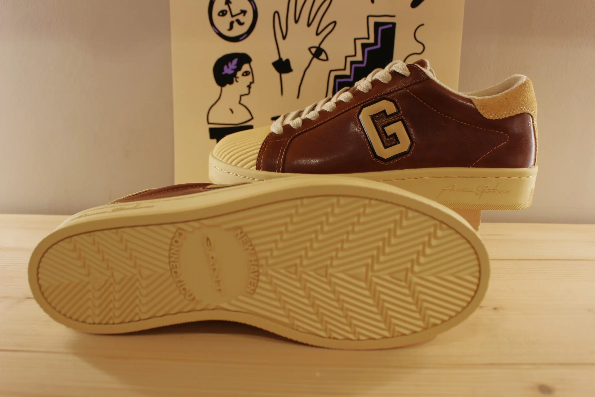Chaussures GANT – Prepus. Sneakers homme en cuir de couleur marron chocolat et caoutchouc beige sur le devant. Velours beige sur l’arrière. Chaussures doublées cuir et éponge. Serrage lacets coton. Semelle interne amovible. Semelle externe en gomme de 3 cm. Talon de 0.5 cm. J’ADORE !!! Elle est très class.