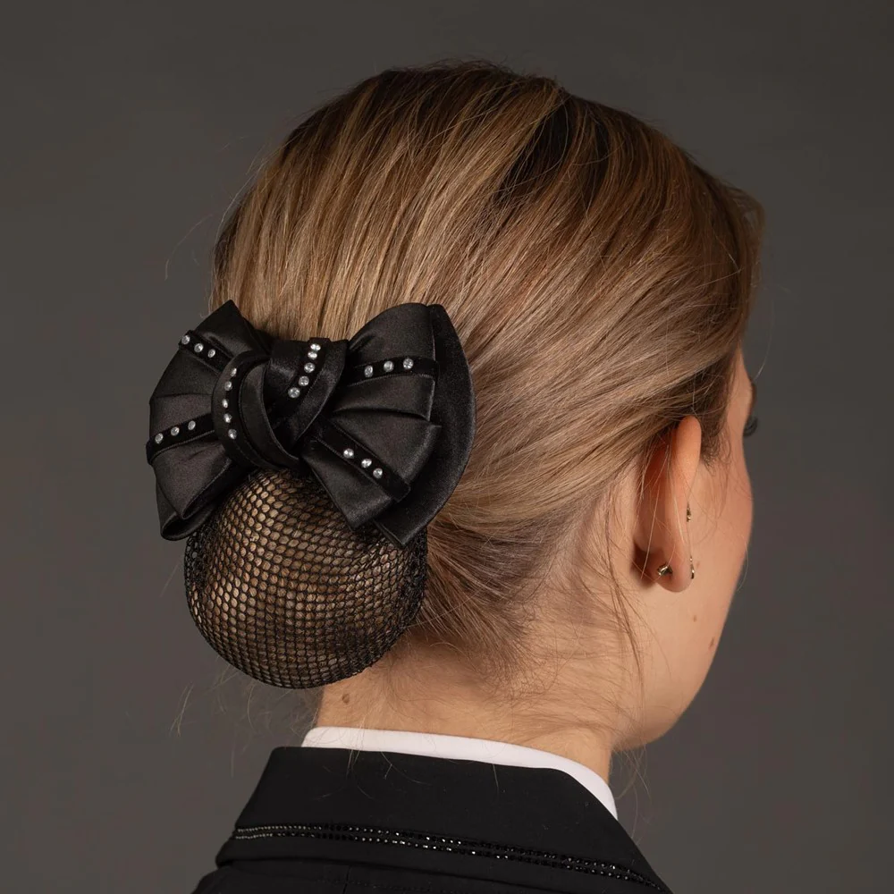 La barette à chignon Crystal est l’accessoire chic et pratique pour sublimer votre coiffure de concours ou d’entraînement. Elle combine élégance et maintien, grâce à sa résille solide qui maintient parfaitement le chignon en place et à son nœud orné de bandes de velours décorées de cristaux étincelants.