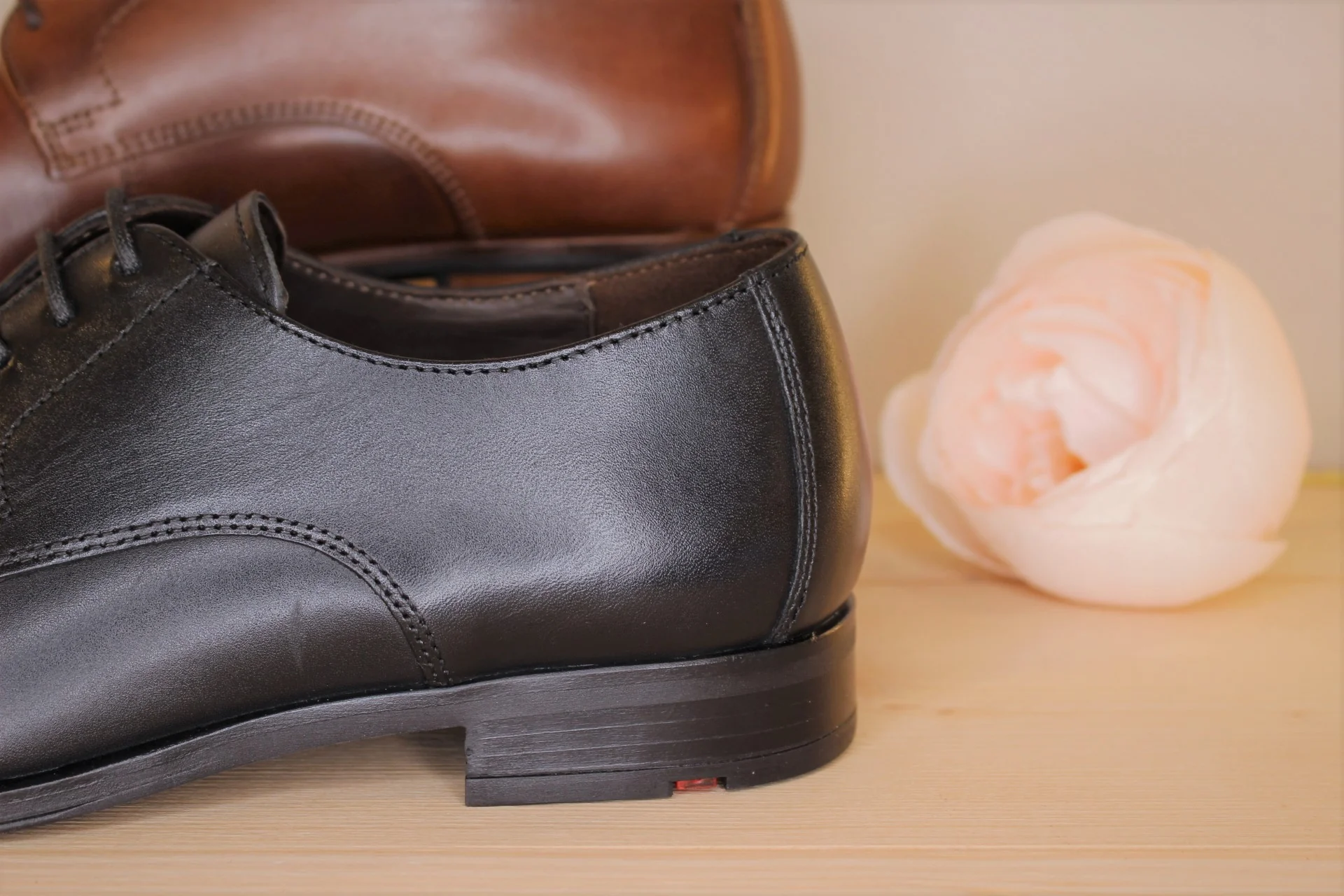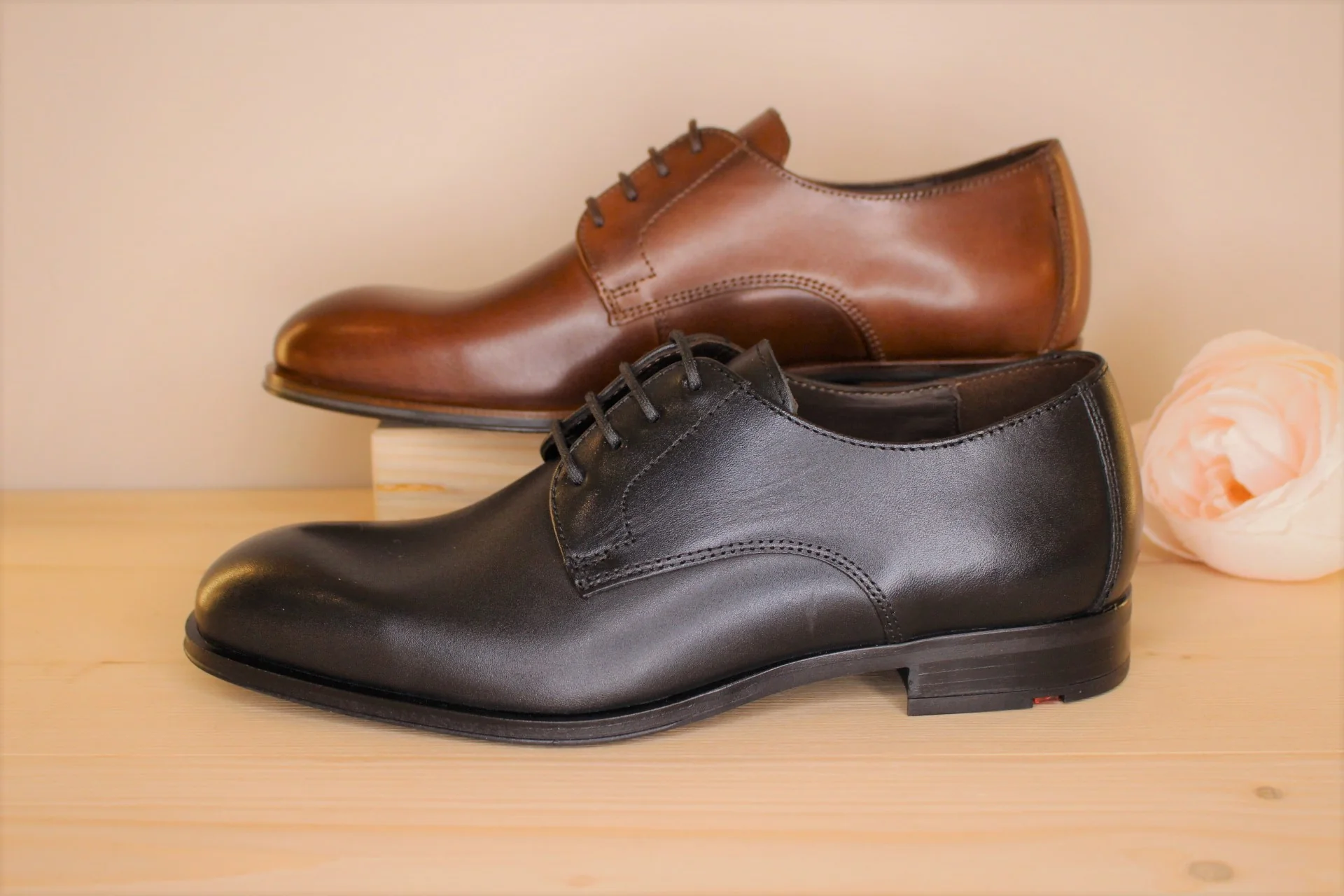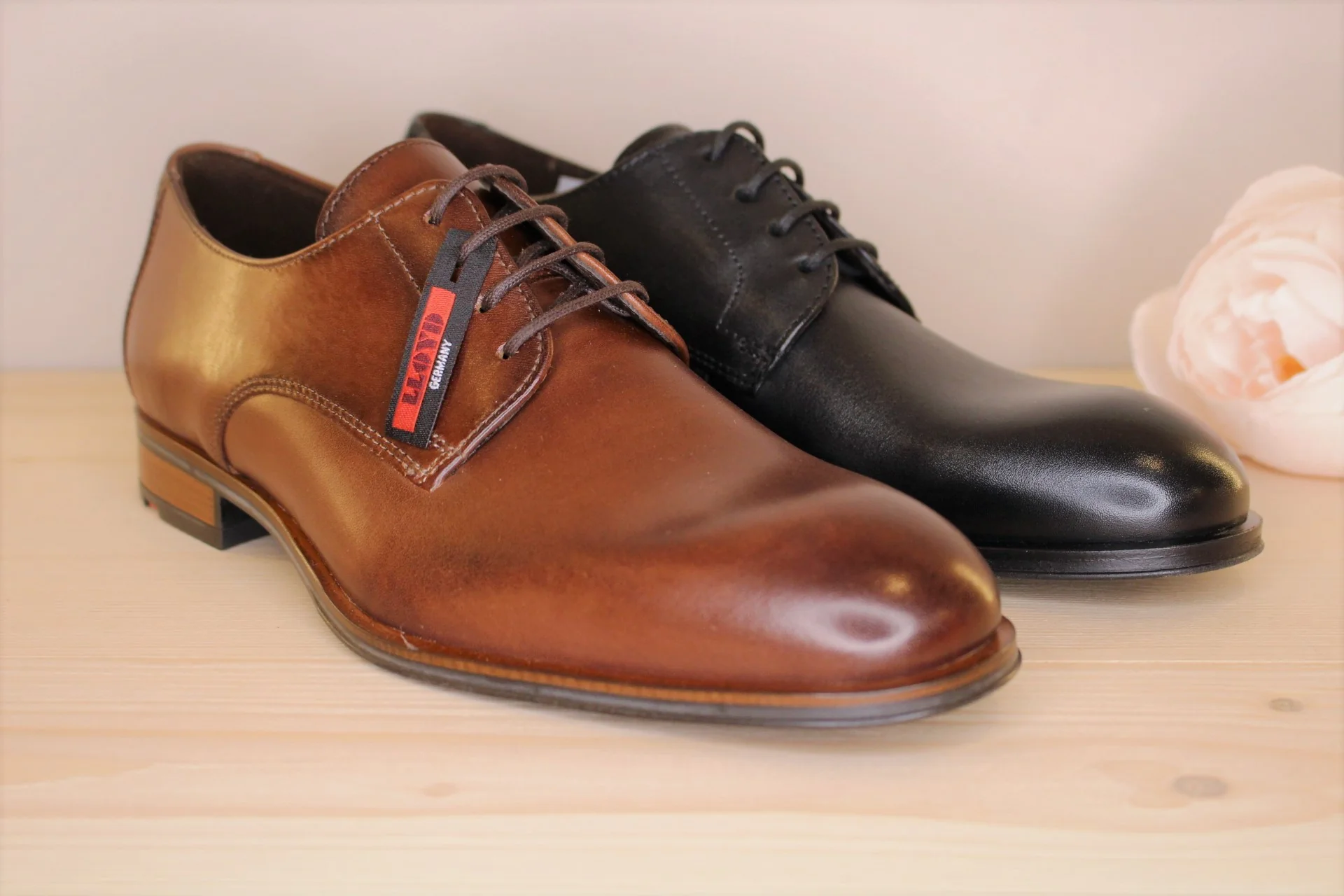 Chaussures LLOYD – Sabre. Fabricant Allemand. Chaussures habillées en cuir de couleur noire ou cigare (marron). Avant légèrement muflé. Serrage lacets coton ton sur ton. Chaussures doublées cuir. Talon de 2 cm. Semelle extérieure en gomme crantée ton sur ton. Points Anglais. Existe du 6.5 au 10. Chaussures indémodable dans la garde robe, cuir très souple et bon chaussant.