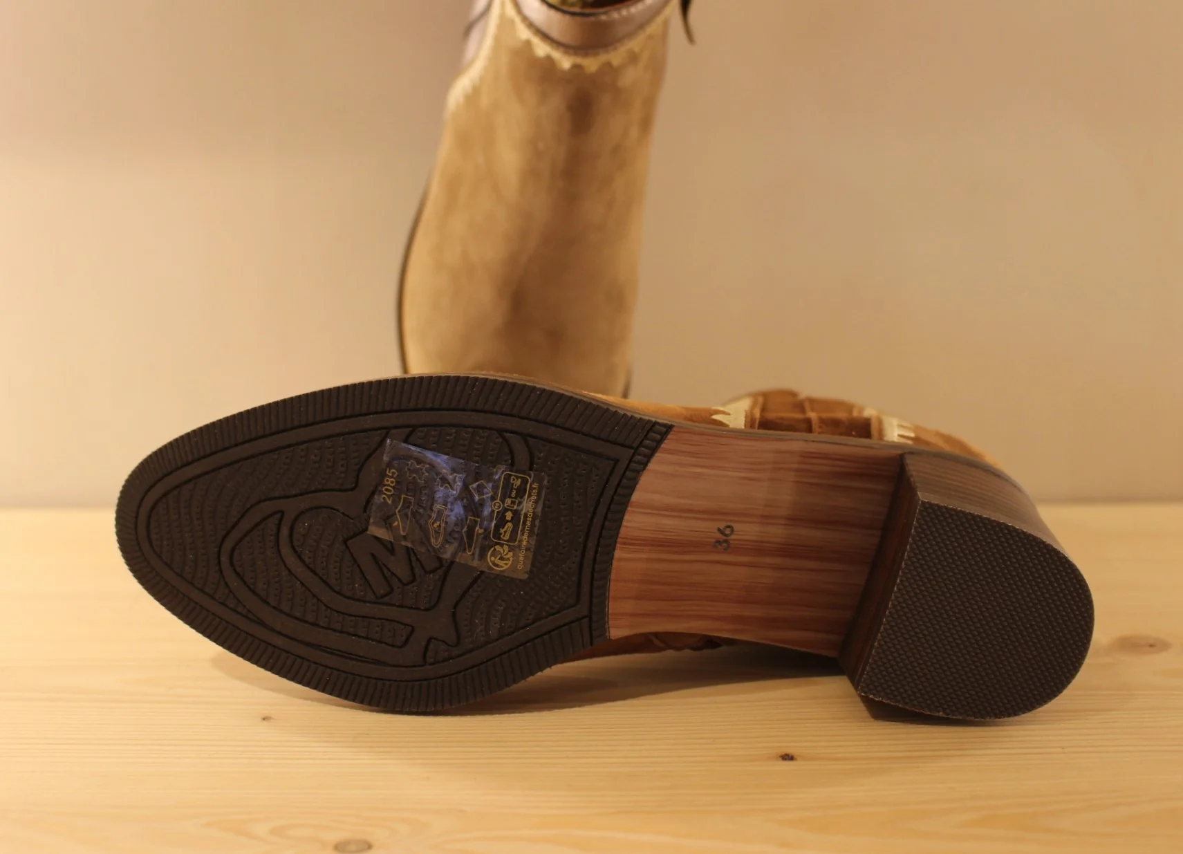 Chaussures MAMZELLE – Topic. Bottine en cuir velours de couleur greige et cuir métallisé ou de couleur noisette et chocolat. Couture décorative sur les quartiers et le tour de cheville. Hauteur de la tige de 13 cm. Zip du côté interne. Chaussures doublées cuir. Semelle externe en gomme de 1 cm. Talon de 4.5 cm. […]