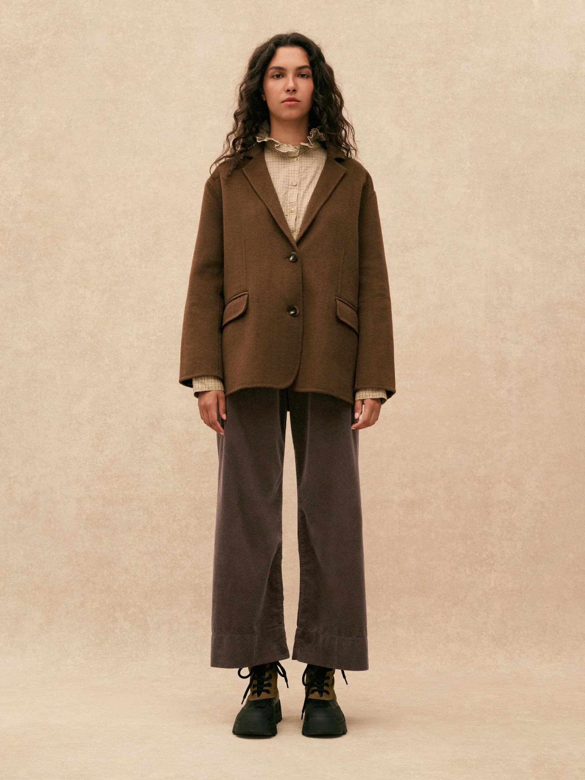 La veste KARABA est un incontournable de la marque HOD PARIS. Sa coupe oversize lui donne une allure masculine qui se marie aussi bien avec un pantalon qu’avec une jupe ou robe fluide. Dans sa version en laine, elle sera votre alliée parfait à utiliser en veste d’extérieur.