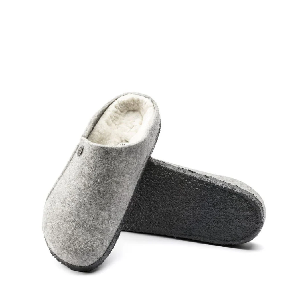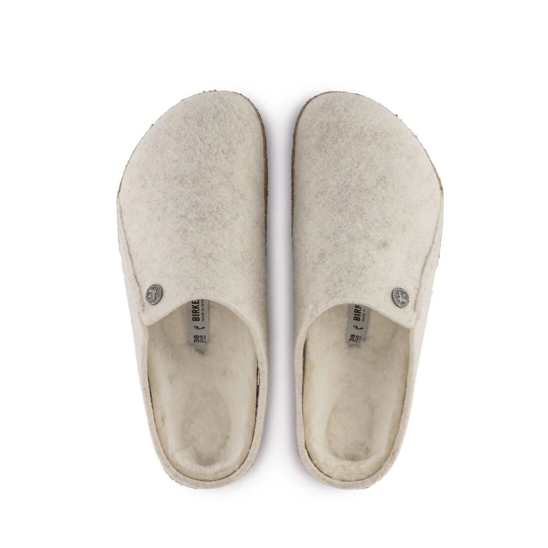 La BIRKENSTOCK Zermatt est notre première vraie pantoufle. Il est doté de notre semelle intérieure emblématique en latex de liège et, pour vous garder au chaud, il est entièrement doublé de peau de mouton véritable qui gardera vos pieds au chaud tout l’hiver. La tige est constituée de laine véritable douce.